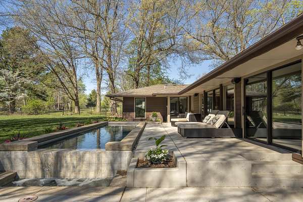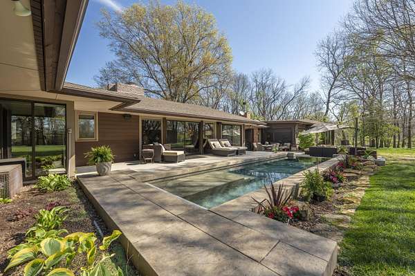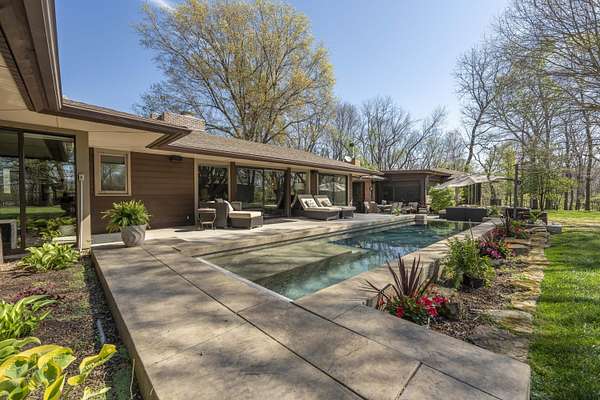 4780 E. Farm Road 128, Springfield, MO. 65802 - This stunning architecturally designed home by Warren Bates, was strongly influenced by the Frank Lloyd Wright style! This sprawling one level home is situated on a picturesque 2.34 acres (m/l) with a wonderful in-ground lap pool. The property boasts a fantastic two story guest house - featuring a family room, kitchen with granite, full bath and a bedroom covering the entire upper floor. The main house has multiple living areas with an abundance of glass, workout room and a fantastic screened-in porch to enjoy the views. Truly a one of a kind property located in the Hickory/Glendale School District.