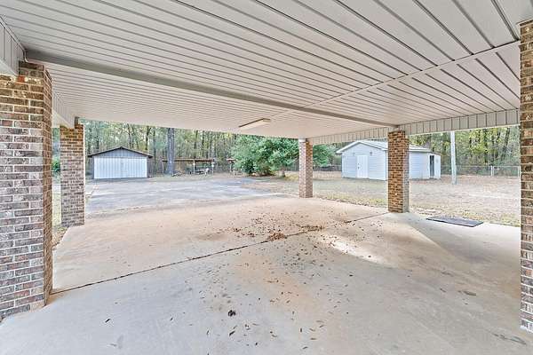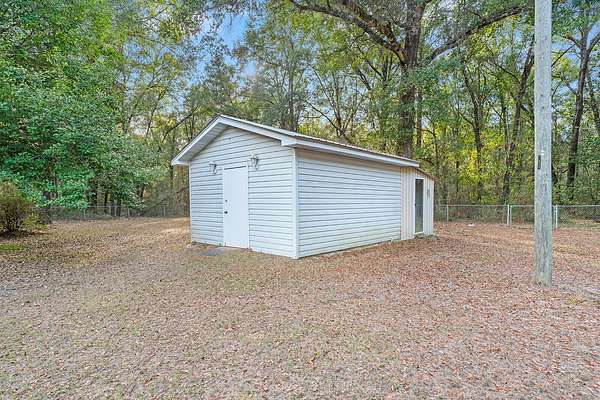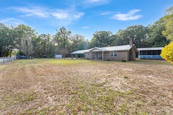 Opportunities like this don't come along often. Set on a spacious 2-acre residential parcel in Holt, Florida, this 1983 brick ranch home offers privacy, flexibility, and room to grow. The home features 2 bedrooms and 2 bathrooms with a flex room, separate kitchen and living room (with a full wall fireplace) and all of that with solid, classic brick construction that provides an excellent foundation for comfortable living or future updates. Surrounding the home is a chain-link fenced yard with an electronic gate, offering added security and peace of mind. Within the fenced area, you'll find three outbuildings, perfect for storage, workshops, hobbies, or equipment - a rare and valuable feature for those needing extra space. Beyond the fenced homesite, the remaining acreage is unfenced and uncleared, giving you the freedom to shape the land to your needs whether for recreation, expansion, or maintaining natural privacy. This combination of usable cleared space and untouched land creates endless possibilities for outdoor living, gardening, or future improvements. Enjoy the quiet of country living without the constraints of a subdivision, all while remaining within reasonable distance to local amenities. Whether you're searching for a primary residence, a rural retreat, or an investment opportunity with land value, this property delivers space, security, and potential. Bring your vision and make this Holt property your own ... where privacy meets possibility. Outbuilding Rough Dimensions 16 x 18 Metal Storage Outbuilding with Concrete Floor 14 x 16 Outbuilding with 14 x 9 attached enclosed shed 12 x 18 Shed 17.5 x 16 Shed with lean - to attached Well pump for irrigation and irrigation system sold in AS IS condition. All informed to be verified by the Buyer