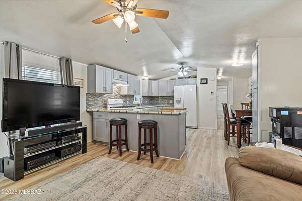 Calling all equestrian lovers! This property is not just a home; it's a move-in ready 2-bedroom, 2-bath home, and a dream come true for anyone seeking tranquility and outdoor living. Situated on a sprawling 1.56 acres, this property offers unparalleled privacy with BLM land bordering most of the property, providing endless opportunities for exploration. Step inside and be greeted by a beautifully updated interior. The kitchen features sleek, modern cabinetry, a stylish backsplash, and a breakfast bar perfect for casual dining. The open concept living and dining areas create a seamless flow, ideal for entertaining guests or simply relaxing. The home also includes a versatile flex room and a cozy family room; both bathed in natural light and offering stunning desert views. Enjoy peace of mind with a 2-year-old roof, a 2-year-old tankless hot water heater, and a water filtration system on a private well. The Cloud Edge Camera Security System ensures your home always has "eyes" on it. For added convenience and security, the property is equipped with a propane-fueled generator and not one, but four RV hookups, making it perfect for hosting friends and family. This is a fantastic horse property with plenty of room to roam and ride. The expansive acreage makes it a perfect setup for you, your family, friends, and four-legged companions. No HOA! Don't miss this incredible opportunity to own a slice of paradise with all the amenities you need for a comfortable rural life.