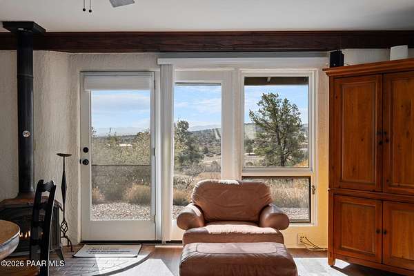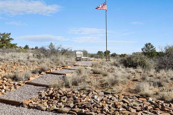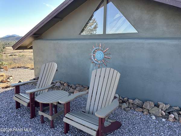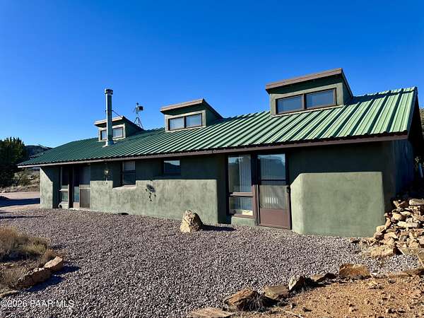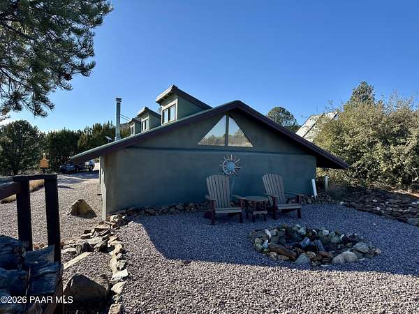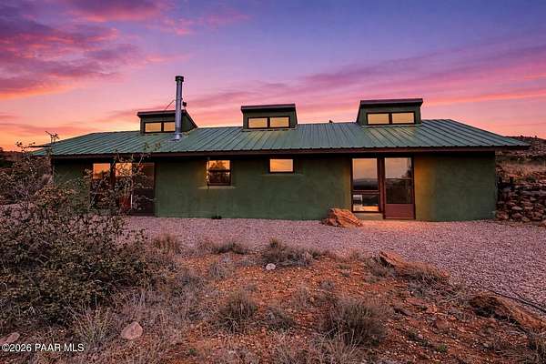 There are places that feel discovered rather than built--and this is one of them.Set on ten private acres in the high desert in Chino Valley, North of Prescott Arizona, this one-bedroom rammed earth sanctuary is defined by intention, simplicity, and a deep connection to the land. Constructed with two-foot-thick rammed earth walls, the home feels grounded and enduring, naturally moderating temperature while offering a quiet, almost meditative interior experience. A metal roof completes the structure, reinforcing durability and timeless design.The property borders Arizona State Land, preserving open space and long-term privacy. Nestled at the foothills of surrounding mountains, the setting delivers layered views of rolling desert terrain, distant horizons, subtle city lights, and the commanding presence of Sullivan Butte, where ancient cliff dwellings remain visible on the mountain's Ridgeline connecting the home to centuries of human history on this land.As evening arrives, the desert transforms. Dark skies reveal an extraordinary canopy of stars, making this an exceptional location for stargazing and a natural candidate for a future observatory site. The night here is expansive, quiet, and profoundly still.One of the property's most unique features is a quartz rock field, located toward the back portion of the acreage. Reaching it requires a short hike across the property, reinforcing the sense of discovery and separation from the main living area. This intentional distance preserves the natural landscape while offering a private destination within your own land ... ideal for exploration, reflection, or simply experiencing a different expression of the terrain.Access to the property is convenient yet appropriately rural, with less than one mile of dirt road, maintaining privacy without isolation. The property is served by a private well producing approximately 7 GPM and equipped with a new pump, along with an additional storage tank, while an 85 gallon solar water heater enhances efficient, low impact living.An unfinished extra large covered carport provides flexibility for future expansion ... whether additional living space, studio, workshop, or enclosed parking. The home is offered partially furnished, allowing for an easy transition, and includes a carefully preserved memory book containing original construction notes and receipts ... an uncommon and valuable record of the build's craftsmanship and care.Zoned for horses, the property sits near excellent riding and recreation options, including the Chino Valley Peavine Trail, Lower Sullivan Canyon, Iron King Trail, and the expansive trails of the Upper Verde River Wildlife Area.This is not a property created for excess or spectacle. It is a place of quiet strength, where architecture, history, and landscape coexist ... offering privacy, authenticity, and a rare opportunity to live in true harmony with the Northern Arizona high desert