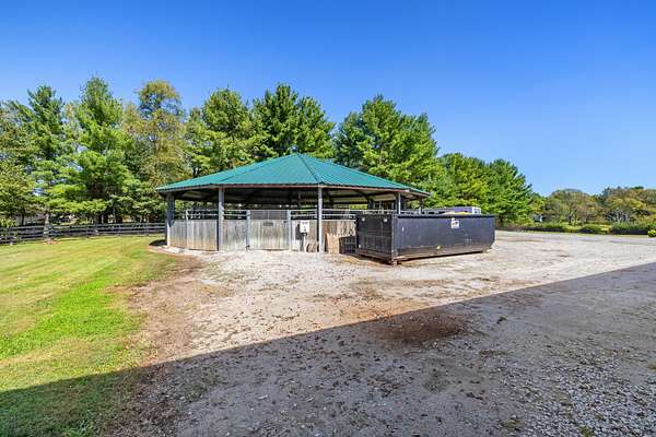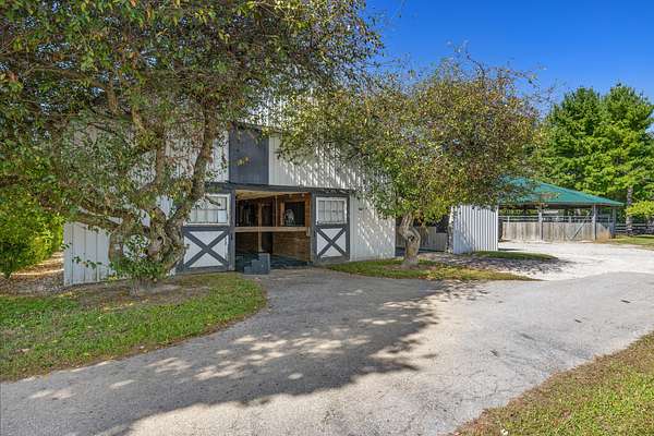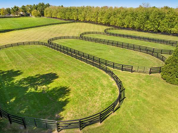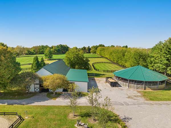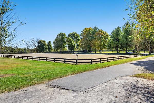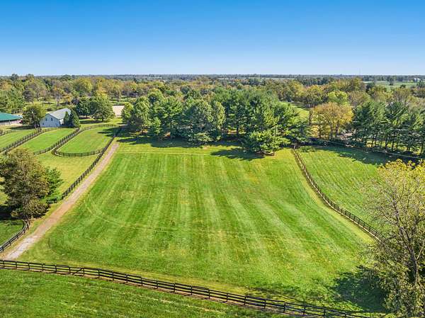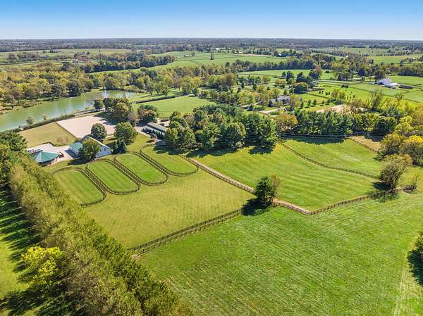 This 12.4-acre turnkey horse farm has been lovingly developed by a celebrated equestrian. Located on the historic Mt. Horeb Pike in Fayette County, the farm's spectacular location is a mere 10 min. from the Kentucky Horse Park and premiere equine hospitals. Immediate neighbors include Avalon at Cherry Knoll, Castleton Lyons, Ekeroth, Lane's End Oak Tree, Marigot Bay, and Spy Coast. Hidden behind a dense thicket of native trees, the gated entrance is set back from the road, offering immense privacy. Well-landscaped throughout, a verdant courtyard offers respite at the heart of the farm. Newer fencing encircles the four paddocks, field, & a green space ideal for conditioning. Fine equine facilities include: two barns complete with 24 stalls, feed & tack rooms, wash racks each with hot water, washers & dryers, and finished space w/three full bathrooms. The 240' x 125' irrigated Wordley Martin ring has excellent footing and overlooks an adjacent lake. Also: a Kraft six-horse covered hotwalker. The contemporary home's light-filled rooms make it an inviting retreat after a day's pursuits. One-level and of brick construction, it has three bedrooms & two bathrooms.