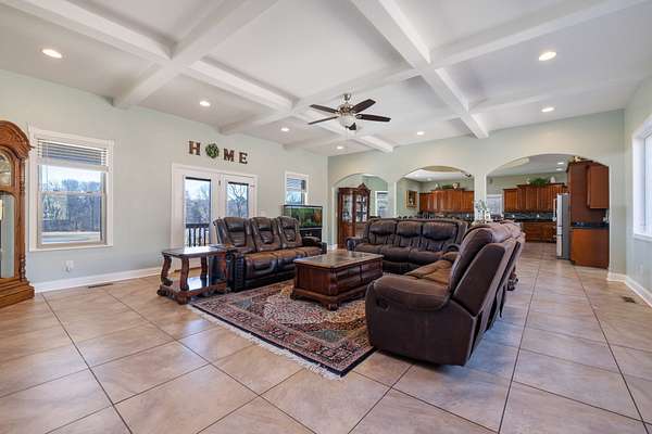 Welcome to your own exclusive retreat. Nestled on over 8 acres of serene land, this incredible property offers a lifestyle that dreams are made of. If space is what you're looking for, you've found it here, both inside the home & outside. From the moment you enter, the spacious layout invites you to explore every corner, where modern amenities blend w/ timeless charm, creating an environment of warmth & comfort. The expansive layout provides ample space for relaxed family living. This home is designed for both relaxation & entertainment. The grand kitchen and massive island adjoined to a great room is the perfect space for entertaining guests. Outside, the sweeping grounds offer endless possibilities for outdoor adventures including, a pond, spanning covered patio, and large workshop (30x60). Whether you're seeking a peaceful retreat from the hustle and bustle of city life or a place to host grand gatherings w/ friends and family, this property offers a lifestyle unlike any other.