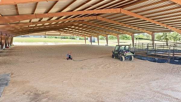 Exceptional 24 Acre Horse Property NOW available in the Cowboy Capital of the World. Upon entering thru the Stylish Entry way you'll recognize the presence of this private and secluded Gem of a property that mirrors an upscale construction of useability. While Featuring the Covered Arena and Executive Home, a property of this magnitude does not hit our market often. Upon entering thru the stunning private entry and driving thru the mature pecan and oak trees you will appreciate the seclusion of the property. The 4 bedroom 6 bath home offers spacious rooms, sizeable walk in closets, en-suite bedrooms, plus a second living area with a fireplace. Upstairs offers a large bedroom with a full bath and a hideaway room. From the interior rock accents, beautiful granite counter tops and detailed hickory cabinets you'll appreciate the superior quality. Showcasing the detailed architectural work along with the manicured exterior, and concrete driveway you are sure to find aesthetically pleasing. Any Equine Enthusiast will find the 120x216 Covered Arena very useable and horse friendly. Eight attached 12x24 stalls with connecting turnout runs make for an ideal set-up even for the personal level use. Other features include a Guest quarters bunkhouse, trailer plug-in, Priefert Equicizer, and plenty of hay storage. The quality of sandy soil, costal grass, scattered mature trees and a half acre stocked tank make this property unique and in a class within itself. Absolutely a stunning horse property.