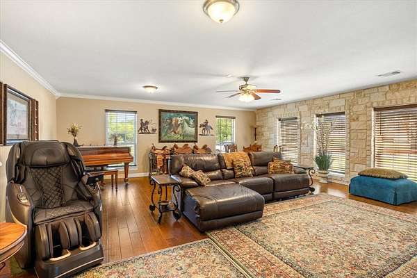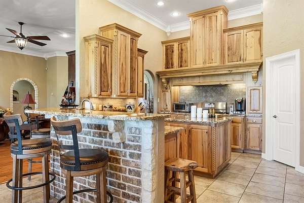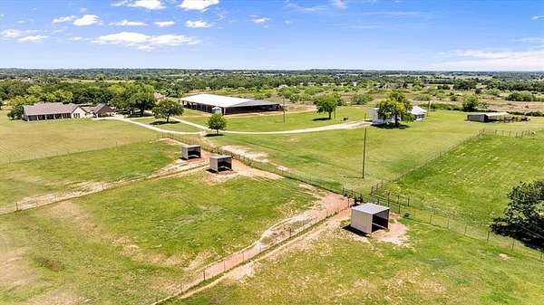 Calling all Horseman...Exceptional 34 Acre Horse Property NOW available in the Cowboy Capital of the World. Upon entering thru the Stylish Entry way you'll recognize the presence of this private and secluded Gem of a property that mirrors an upscale construction of functionality. While Featuring the Covered Arena and Executive Home, a property of this magnitude does not hit our market often. Rolling down the drive thru the mature oak and pecan trees you have a feeling of complete seclussion and privacy. This amazing custom 4 bedroom 6 bath home offers not only spacious rooms but also sizeable walk in closets, en-suite bedrooms, plus a second living area or den with a fireplace. Upstairs features an upstairs bedroom with a full bath and hideaway room. From the interior rock accents, beautiful granite counter tops and detailed hickory cabinets you'll appreciate the superior quality. Showcasing the detailed architectural work along with the manicured exterior, and concrete driveway you are sure to find aesthetically pleasing. Any Equine Enthusiast will find the 120x216 Covered Arena very useable and horse friendly. Eight attached 12x24 stalls with connecting turnout runs make for an ideal set-up even for the personal level use. Other features include a Guest quarters bunkhouse, trailer plug-in, Priefert Equicizer, and plenty of hay storage. Up on the Hill sits a Charming 3 bedroom 1 bath guest house overlooking the country and property perfect for family overflow or a ranch manager. There is an additional 4 stall shed row barn and 3 large turnout pasture traps with run in sheds. The quality of soil, pasture, scattered mature pecan and oak trees with a tank make this property unique and in a class within itself. Ideal location yet very private.