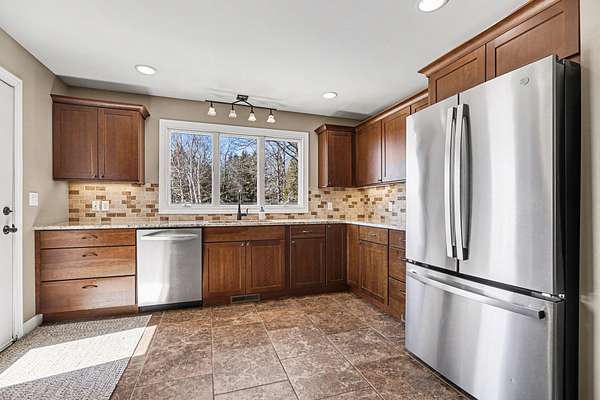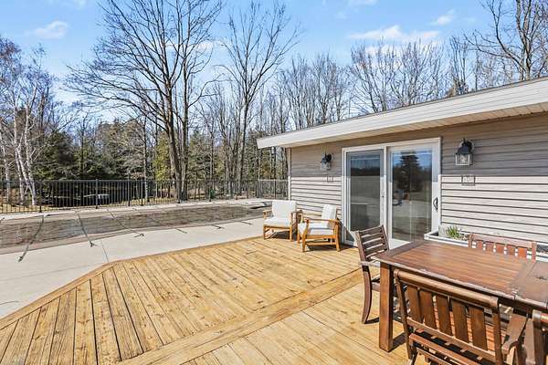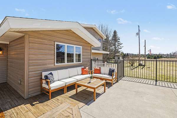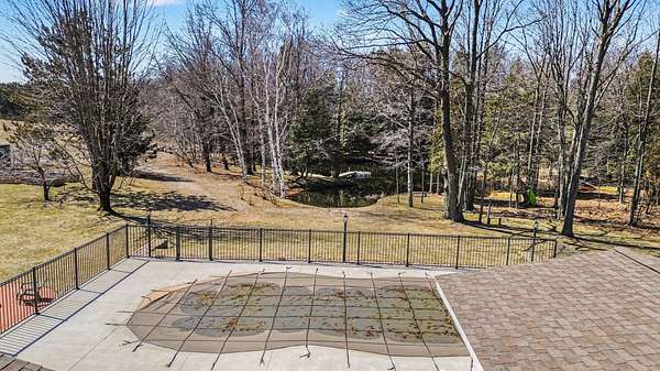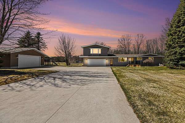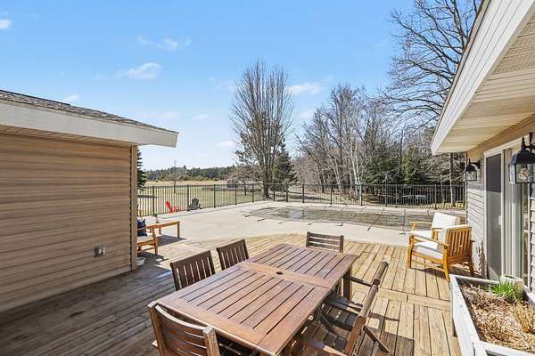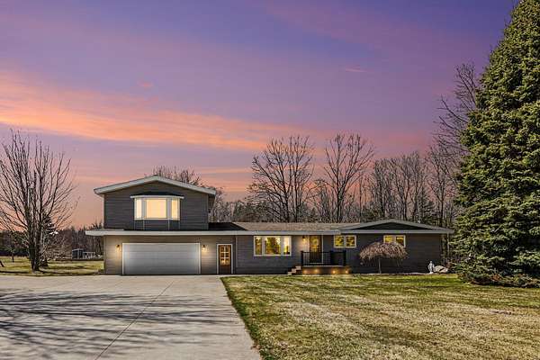 Tucked away on 19.5 beautiful acres, this charming property at 4786 Red Apple Rd offers privacy, space, and the best of Northern Michigan living. The 4-bedroom, 2-bath home features approximately 2,400 square feet of comfortable living space designed for both everyday living and entertaining. The modernized kitchen showcases rich cabinetry, granite countertops, stainless steel appliances, and a tiled backsplash, along with plenty of cabinet and counter space for storage and functionality. A large window over the sink fills the space with natural light and peaceful views of the property. Outside, enjoy a backyard retreat with a beautiful in-ground pool, a picturesque pond, and room to explore across the expansive acreage. A second garage adds valuable space for hobbies and equipment, and a full-house generator offers added peace of mind and year-round reliability. Enjoy peaceful privacy just minutes from Magoon Creek Natural Area and Lake Michigan! Call to schedule a tour!