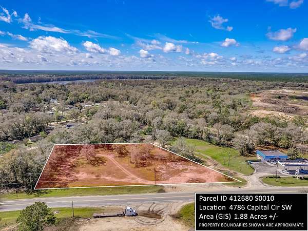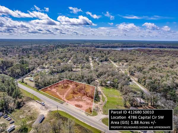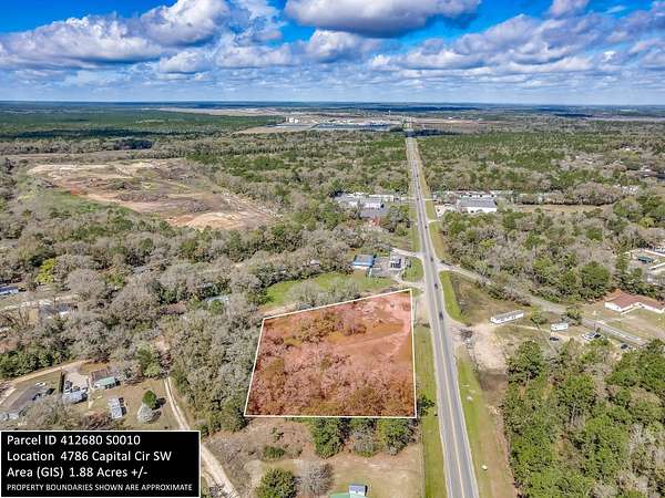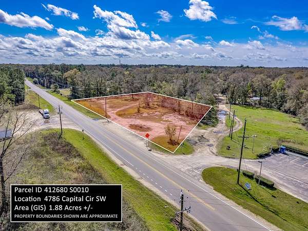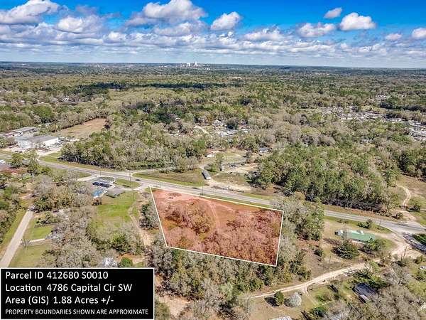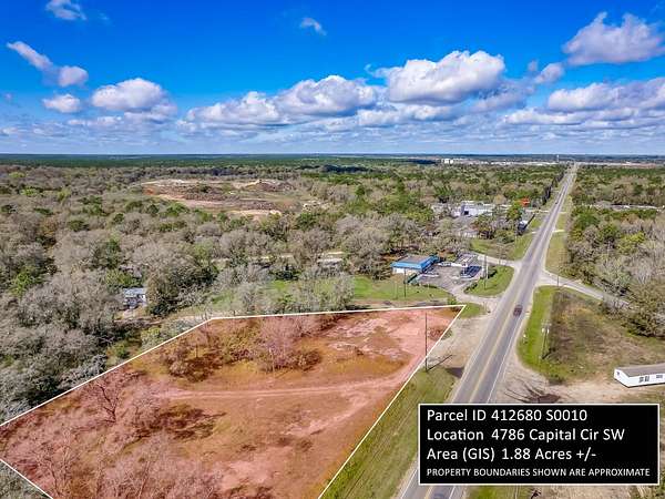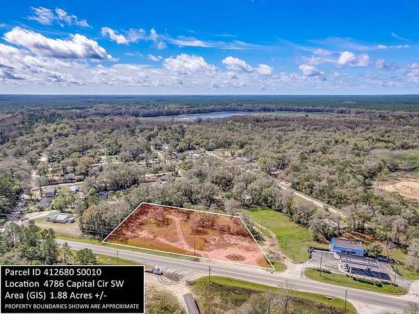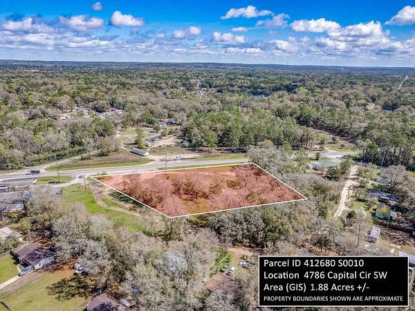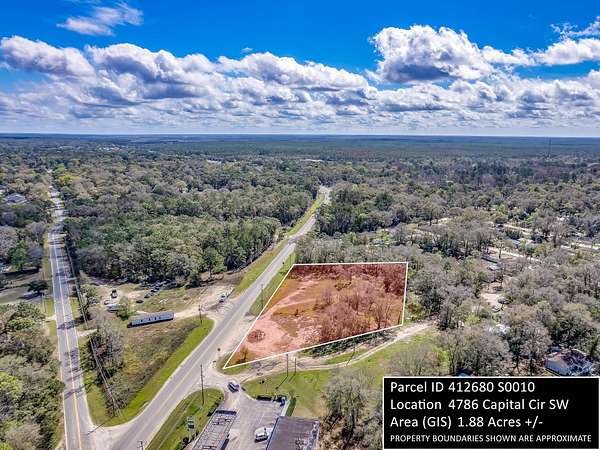 Est $3,003/moCommercial property on well traveled Capital Circle near airport! 1.88 acres zoned C-2, general commercial. There are 4 parcels being sold together- Property fronts CCSW & corners Tillie Ln and Parallel St. Tax ID #'s recently combined, main# 412680S0010 & 412680S0050 front CCSE, lot on 4973 Tillie Lane is 41680S0170 & 1478 Parallel St is 412680S0150. There is currently a well on property but can hook to with water and sewer.