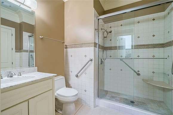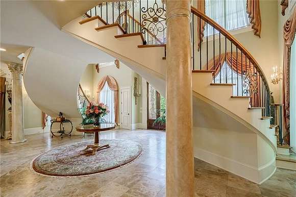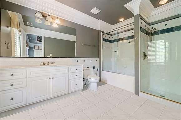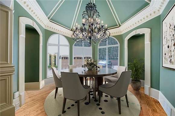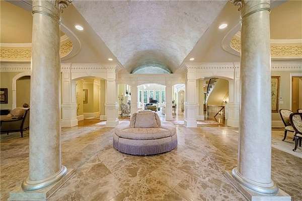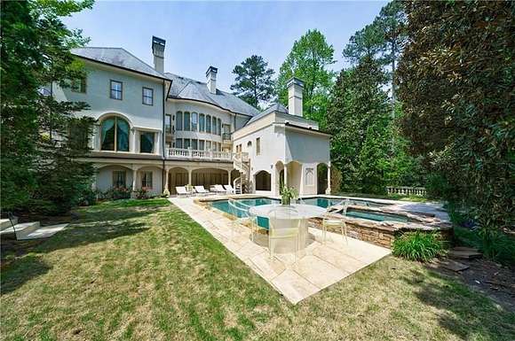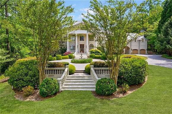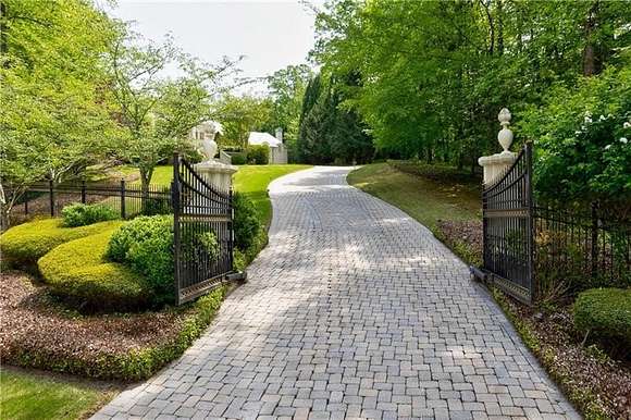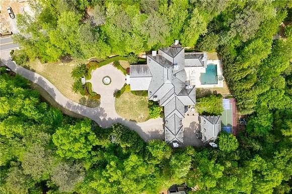 Don't miss this classic beauty, close to everything Metro Atlanta has to offer, yet still secluded and quiet! Situated on a hillside lot among lush greenery and manicured grounds that create the ultimate retreat, 4787 Northside Drive offers a fully equipped guest house, a porte cochere, an elevator and a spectacular outdoor entertainment space that includes a patio area with a pool, an outdoor kitchen, a basketball court and a playground. This private, gated estate in Greek Revival style boasts a full-height entry porch with a pediment supported by Corinthian-style columns welcoming to an interior in which no expense was spared. Designed to comfortably accommodate large gatherings, the first level is characterized by opulence, resplendent lighting and intricate architectural details in rooms where marble and stone lend gravity to the space. Commencing with a grand bifurcated staircase in the grand foyer, it centers around a banquet-sized dining room with a fireplace and a salon and a formal fireside living room dominated by a wall of windows. Ascend the circular stairs in the home office featuring a fireplace and a TV to find a library with gorgeous built-ins. Off the living room, the kitchen boasts a large center island, a walk-in pantry, plenty of solid-surface countertop prep space, light cabinetry and professional-grade stainless steel appliances (including a Sub-Zero fridge and a double oven). An adjacent keeping room features a coffered ceiling, built-ins, a fireplace and large windows. Discover a spacious retreat in the primary en suite, featuring a sitting area with a fireplace, a show-stopping walk-in closet and a spa-inspired bathroom that includes a walk-in shower, a garden soaking tub and dual vanities. Tray ceilings add a feeling of height. The second level, with an abundance of additional bedrooms each with an en suite bathroom and closet space, offers lavish options for privacy and personalization for everyone. Upper and lower laundry rooms with storage handle all home organization needs with ease. Fully equipped with a wine cellar, a home theater, a billiard/game room, a bar, a home salon, an exercise room and a sauna, this estate offers every convenience. The guest house offers flexible living arrangements for multigenerational households as well as a place for visitors. The four-car garage provides plenty of accommodation for vehicles and offers space for storage.