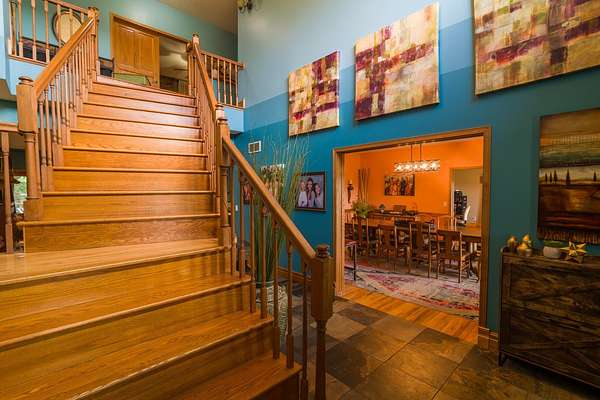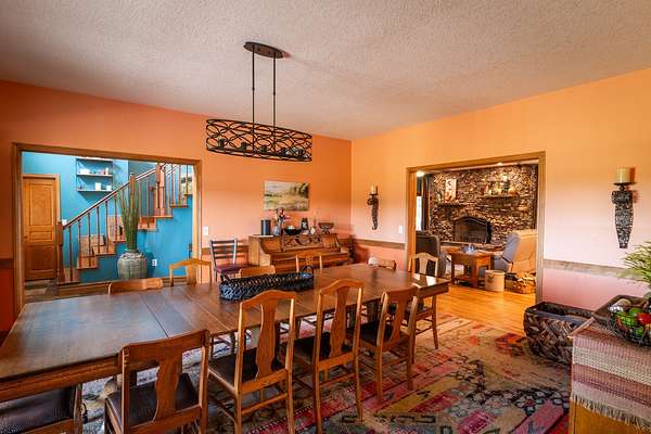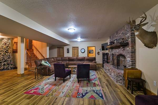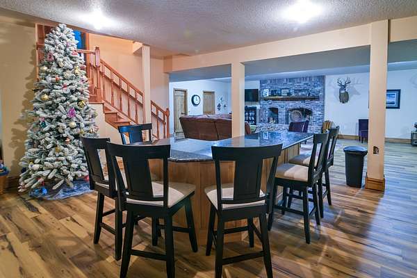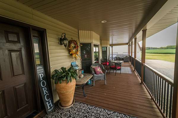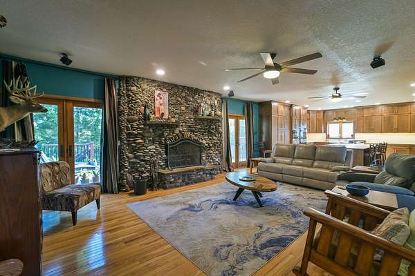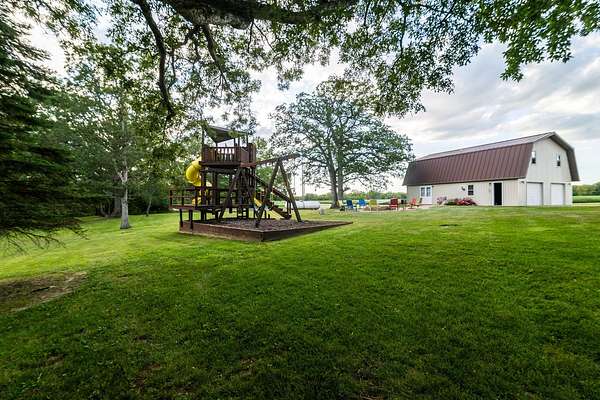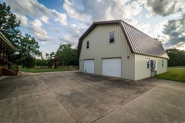 Welcome to your private slice of country paradise! Nestled on 2.41 acres, this spacious and well-maintained home offers the perfect blend of rustic charm and modern comfort. Enjoy peaceful mornings and scenic views from the expansive wrap-around composite deck, or cozy up beside one of the three stone fireplaces throughout the home. Inside, you'll find beautiful hardwood floors, an updated kitchen with custom cabinetry, a large kitchen island, and Andersen windows and doors that fill the space with natural light. With 5 generously sized bedrooms and 3 1/2 baths, there's ample room for family and guests. The spacious master bedroom features a stone fireplace, full bathroom, large walk-in closet and access to a private deck. Laundry room conveniently located on the 2nd floor near the upstairs bedrooms. The finished basement offers additional living or entertaining space, perfect for a home theater, gym, or game room and a built in sauna. Other interior features include 6" baseboard trim and 9' ceilings throughout the home. Car enthusiasts and hobbyists will love the 4-car attached garage, plus a 2-car detached garage featuring a heated and cooled space with 2 additional bedrooms and a full bath - ideal for guests, a home office, or a studio. An additional pole shed provides even more storage for vehicles or outdoor equipment. Never worry about losing power with the whole house backup generator. With a shared pond perfect for quiet afternoons of fishing or relaxing by the water, this property offers country living at its finest - just minutes from town conveniences. Don't miss this rare opportunity to own a this country home!
