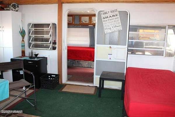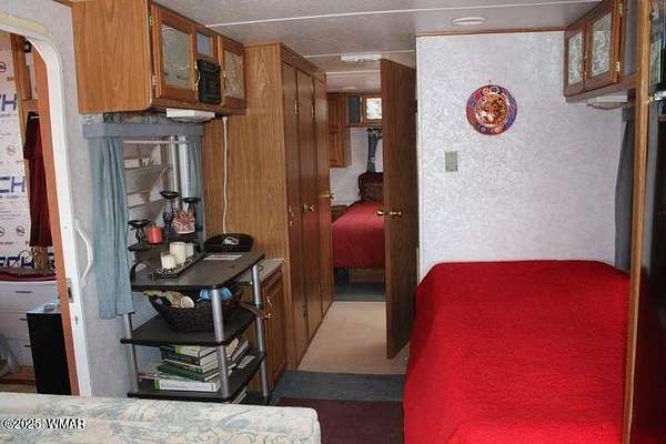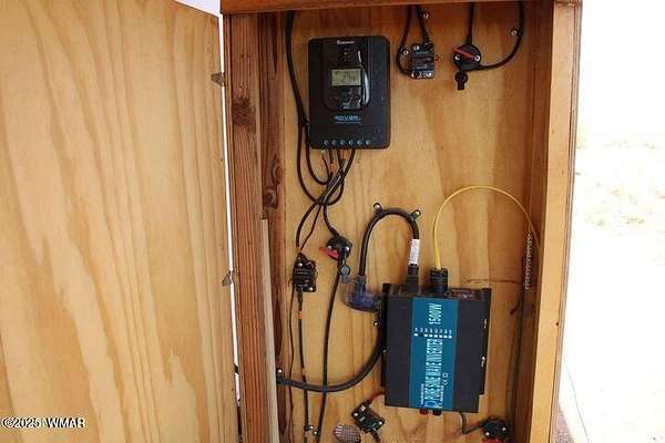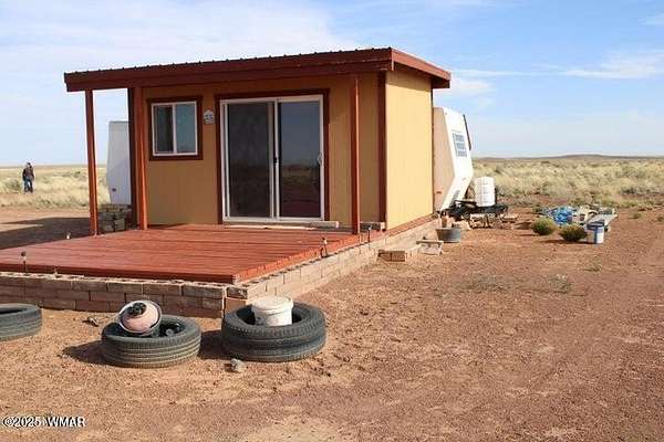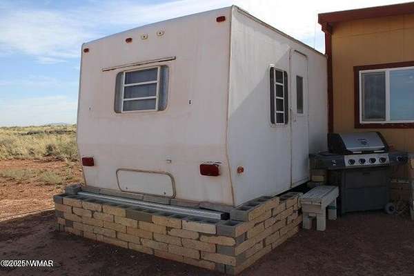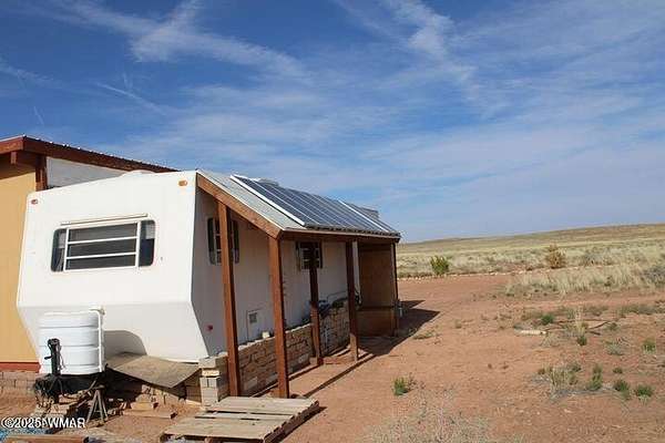 Est $1,038/moThis fenced 38.87 AC has a well with a pump & generator. There is a 30' Dutchman RV set up on the property. The RV has block skirting & is tied down. A 15'x16' room addition completes the living space. It includes a 15'x15' storage shed. A Solar system supplies the power with a 1500W inverter & includes 2 large storage batteries. It features incredible panoramic views & vast open space. Very well done.