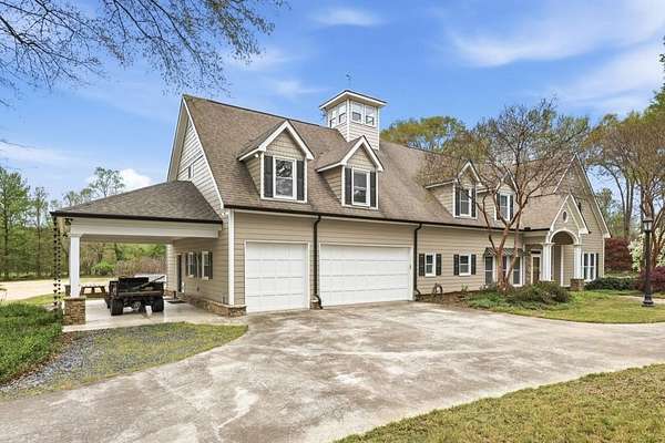 Discover a stunning and private oasis in Hoschton, Georgia, situated on just over 20 intentiuonally designed acres. This exceptional gated property offers an abundance of amenities. The expansive, custom built residence located at the end of a winding drive features four bedrooms, four bathrooms, a media/bonus room, formal dining room and a family room with a cozy fireplace, encompassing over 4,300 square feet of living space. Additionally, a separate detached office with its own entrance, a full bath, a garage and a storage area present an ideal setting for a home-based business, a workshop or the potential to convert into a guest or in-law cottage. Further enhancing this remarkable property are a second detached garage, a netted greenhouse, a potting shed, a private pond, a creek, a 50-yard putting green, and several expansive fields that offer excellent opportunities for outdoor sports. If you're considering options for expansion into a family compound, this property also includes multiple prime building sites suitable for future homes or structures.