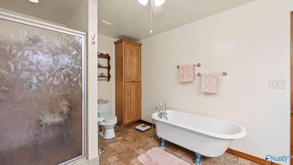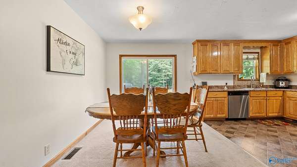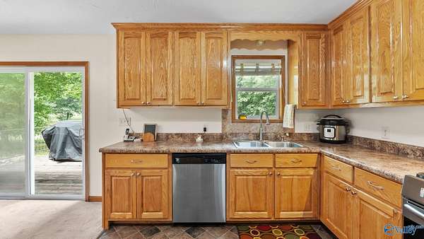 Nestled beneath the trees on Lookout Mountain, this sturdy rock home offers a serene retreat on 7.6+/- acres with a winding concrete drive that ensures privacy. Spacious throughout with 3 BR 2 Ba with a split floor plan. Kitchen equipped with stainless steel appliances and custom ash cabinets compliment the dinning area with direct access to the back deck. Large windows in the living room and master bedroom allow natural light to warm the space. Master bath with separate shower and charming claw foot tub. Additionally you will find the workshop with concrete pad and electric for your projects and two extra septic systems and additional water meter providing potential for future expansion.
