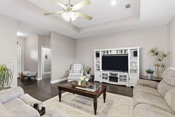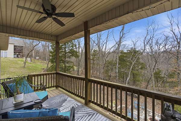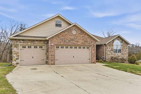 Immaculately cared for home with stunning Ozark views on over an acre! This spacious 3 bedroom, 2 bathroom home offers over 1,900 square feet of living space plus a versatile flex room above the garage perfect for a home office, hobby room, or even a fourth bedroom. The main living area is warm and inviting with abundant natural light and an open concept layout that flows seamlessly between the kitchen, dining, and living spaces, creating the perfect setup for everyday living and entertaining. The kitchen features granite countertops, ample cabinet storage, a pantry, and generous dining space nearby for gathering with family and friends. The primary suite is tucked away on its own end of the home, offering privacy along with a soaking tub and custom walk-in shower. Step outside to enjoy the covered back deck overlooking peaceful wooded views, relax in the hot tub, or gather around the fire pit under the stars. A 16x16 John Deere room provides excellent storage for outdoor gear and equipment. Nestled in a fantastic location with quick highway access and just minutes from everything Branson has to offer!