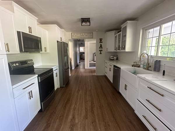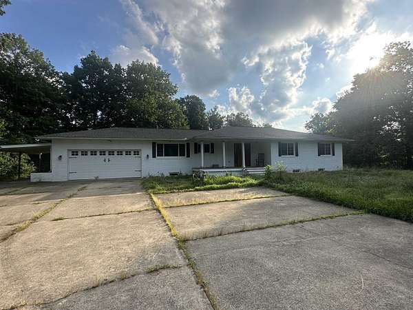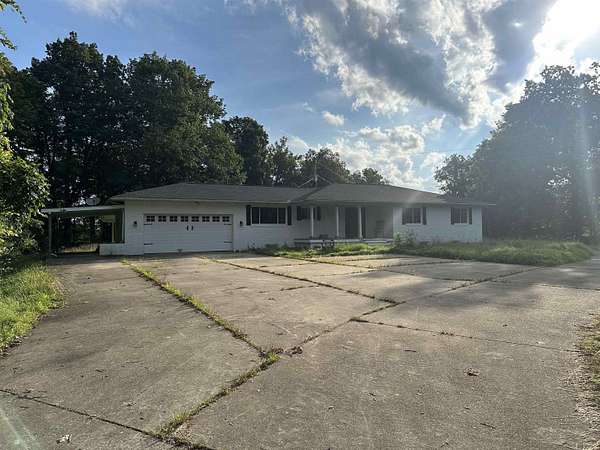 Great opportunity to make this property your own! This 3-bedroom, 2-bathroom home offers a spacious layout with all main-level living. The primary bedroom features its own private bathroom, while the kitchen includes white cabinetry and easy flow into the nearby living room. A large den--formerly the garage--adds valuable living space on the main floor. Downstairs, the partially finished basement provides additional square footage with a second living area, a fourth bedroom, laundry, and a full bathroom--ideal for guests or multi-generational living. Outside, enjoy the site of approximately 2 acres and the convenience of a large detached garage--perfect for storage, hobbies, or workspace. With some remodel work and TLC, this property has the potential to truly shine.