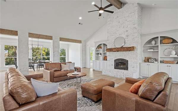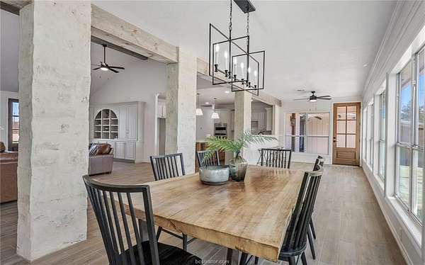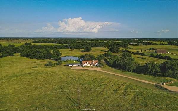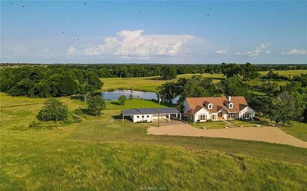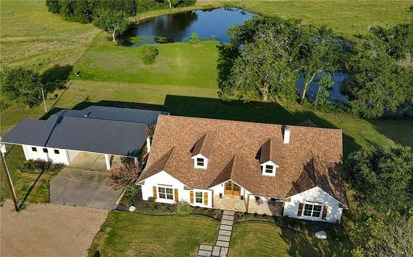 Professionally designed and meticulously updated in 2024 - Both the interior and exterior of the home will assure you the details have been taken care of with your first step onto the property! The 3 bedroom 2 bath country home is stunning and sits on just over 25 acres in Burleson County - minutes to downtown Caldwell and an easy commute to Austin/Bastrop area and Bryan/College Station. INSIDE: There is elegance with modern country style around every corner. Both the dining room and kitchen enjoy breathtaking views of the pond and rolling wooded acreage behind the home. Appliances, fixtures, stone accents, wood grained tile flooring, and hardware throughout the home complement one another and offer a feeling of elegance with sought after comforts. OUTSIDE: The shop/storage space has been designed to complement the outside of the home with strategically placed designer windows and upgraded board and batten exterior. Also to be appreciated is the large porch that joins the home and shop with the right touches of natural stone and landscaping - a true back yard escape to the country! The acreage offers rolling terrain, a shaded wooded backdrop, one pond, perimeter fencing and AG valuation in place. This home is the FULL PACKAGE - country elegance with room for everyone!