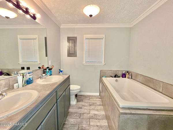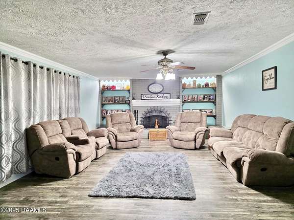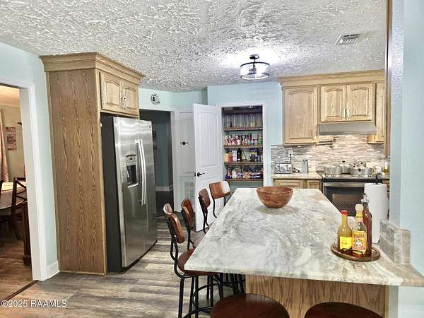 - Bookcases, Built-Ins, Crown Molding, Double Vanity, Electric Dryer Con, Electric Stove Con, Electric Washer Con, Kitchen Island, Walk-In Pantry