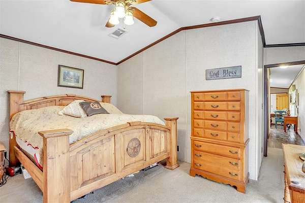 Venture outside and be captivated by the vast 18 acres of picturesque countryside, ideal for agricultural pursuits or simply enjoying the serene Texas landscape. The property is AG exempt, maximizing its potential for various farming endeavors. A deep-stocked half acre pond provides opportunities for fishing or just soaking in the natural beauty.