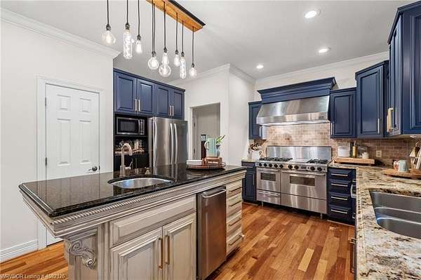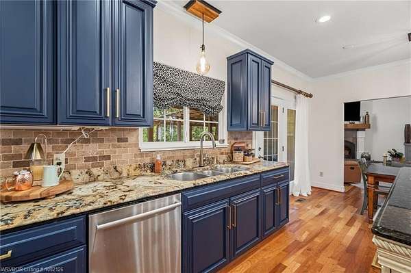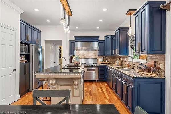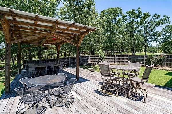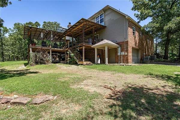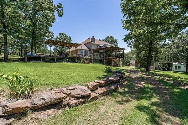 Stunning 4 Bedroom Home on 3.6 Acres with Guest Apartment, house generator, Shop & More in Saddleback Ranch! Welcome to your dream property in the coveted Saddleback Ranch subdivision! This 4 bed, 2.5 bath home sits on over 3.6 beautifully maintained acres (roof on main home replaced 2021), offering exceptional privacy while being just minutes from Fort Smith, Van Buren, and with immediate access to the I-40 on-ramp. Step inside to find hardwood floors, a cozy fireplace, vaulted ceilings, and a remodeled master bathroom. The chef's kitchen features granite countertops and professional-grade appliances, perfect for entertaining or everyday living. The spacious master suite is located on the main level for added convenience. Enjoy outdoor living with a large covered deck, wet weather creek, and peaceful views. The property includes a 3-car garage with storm shelter, a heated and cooled workshop 42x30 (2 story) with upstairs living quarters and a bathroom. The workshop area features 42x15 camper cover and a 14x17 metal welding shop attached to the rear in addition to the main area. Park all the toys in the 20x20 tractor barn with an enclosed blacksmith shop on the back. Raise your own grub with the fenced garden area and chicken coop. Quiet, private setting in a highly desirable area. Don't miss this rare opportunity to own a versatile, amenity-rich property in a prime location!