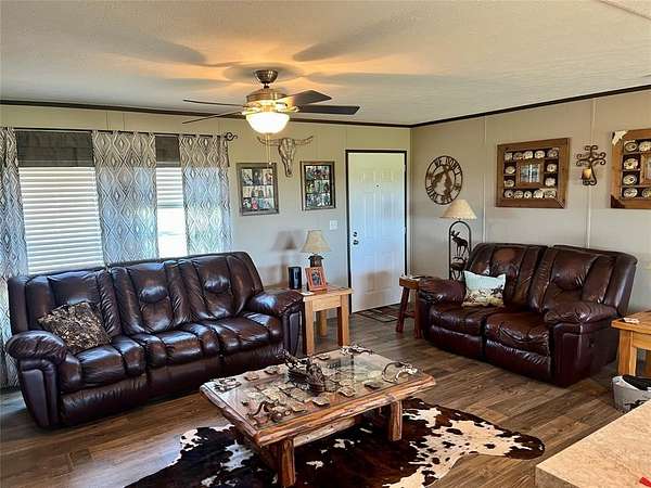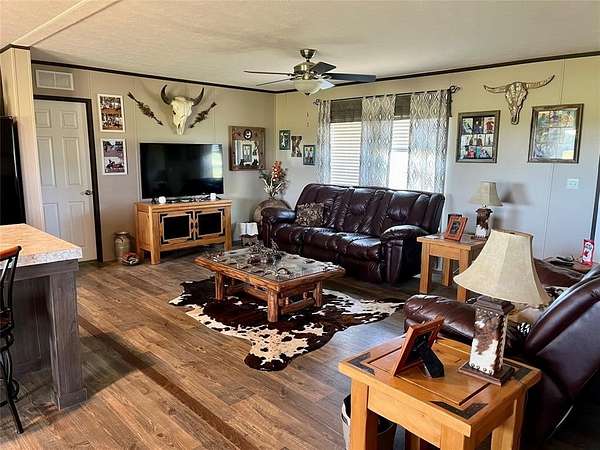 The ranch boasts three houses. The first is the homestead ranch house that is approximately 1700 sq ft, 3 bed, 1 bath with a beautiful yard and mature pecan trees. The second is a 2019, 1400 sq ft 3bed, 2bath farm style manufactured home. And the third is a newly built 1200 sq ft 2bed, 1 bath barndominium style home. Plenty of room for a family business or rent the houses for added income. This property is a must see and truly one of a kind!