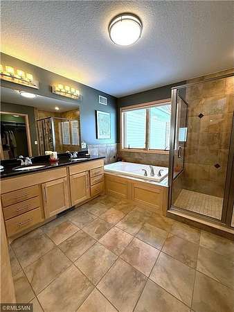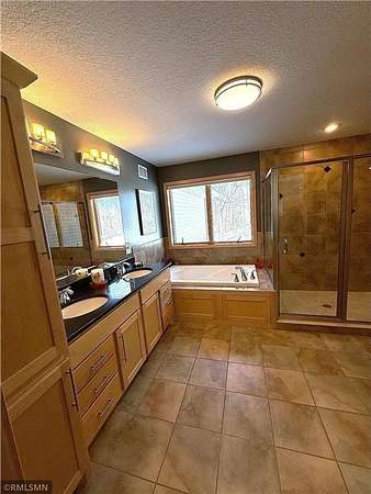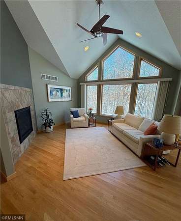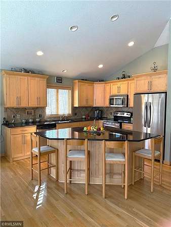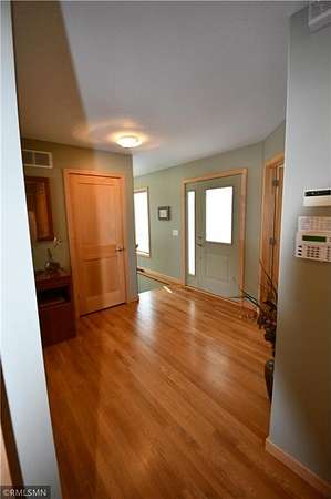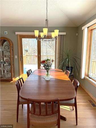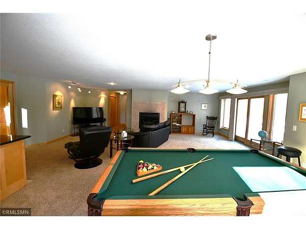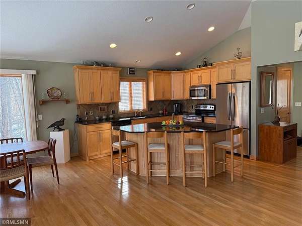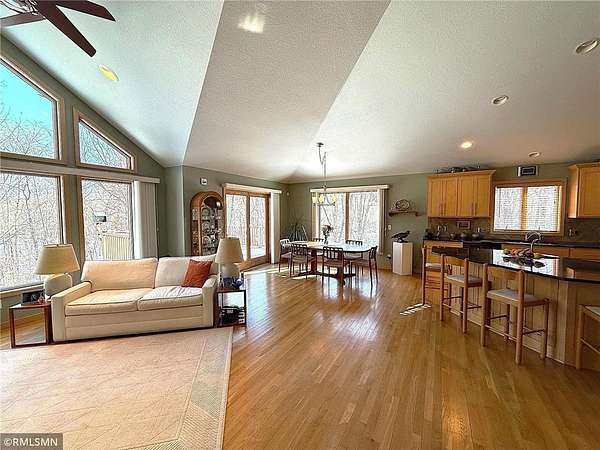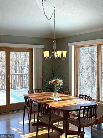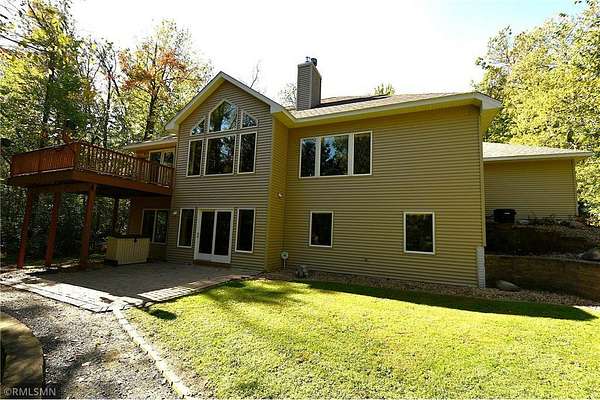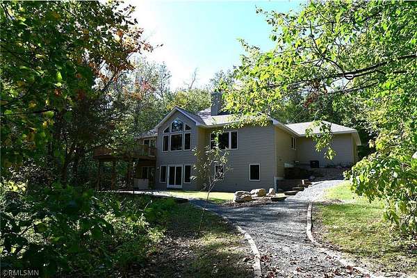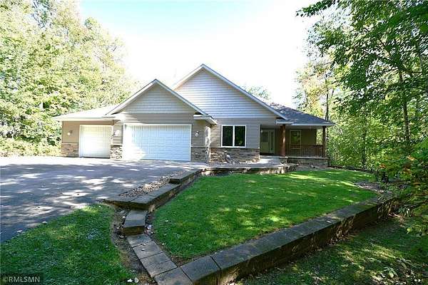 A retreat in Nature - Secluded, Private 3BD, 3BA home is nestled in 3.8 wooded acres with pond views. This meticulously well-kept home is comfortable with main-level primary living. The ML features wood flooring throughout, fresh paint, maple doors and trim, a large foyer, a kitchen, and a dining room with a patio door to access a deck overlooking the backyard. Enjoy an afternoon relaxing on the front porch or back deck for peaceful views of birds and wildlife. The Great room with vaulted ceilings, a gas fireplace, and an abundance of natural light with views to appreciate nature all around. The ML master suite features a tray ceiling, recessed lighting, double sinks, a soaking tub, tile surround, tile floor, a walk-in shower, and a walk-in closet. Work from home. You will find the study/office, BA, and Laundry room adjacent to the foyer on the ML. The LL features 2 BD, BA, a wet bar, a game room area, and a large family room with an ambient wood-burning fireplace. Walkout to a lower patio to the walking paths in the woods near the home. You can walk down to the pond. Finished, insulated oversized garage; blacktop/concrete driveway; brick front; landscaping walls; high-speed internet available. This home is conveniently located between Somerset and Osceola. St. Croix River access -