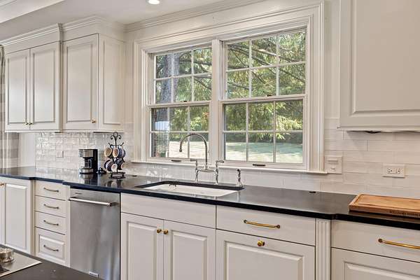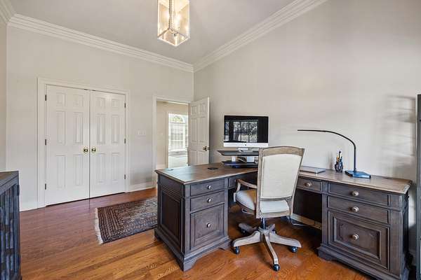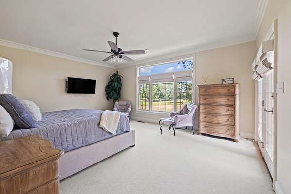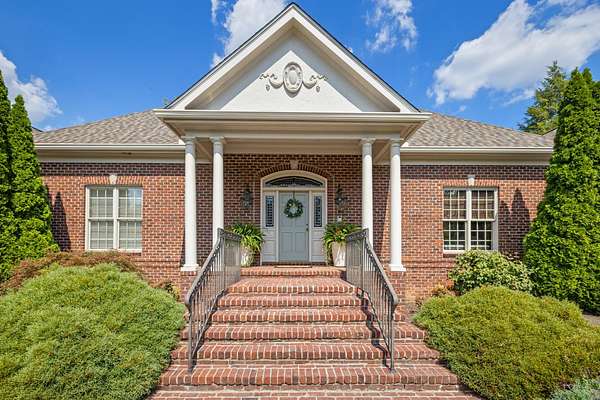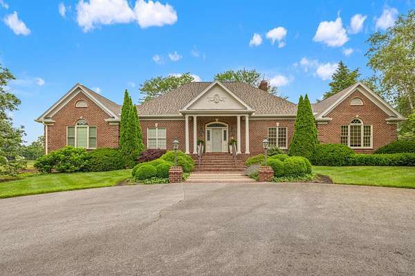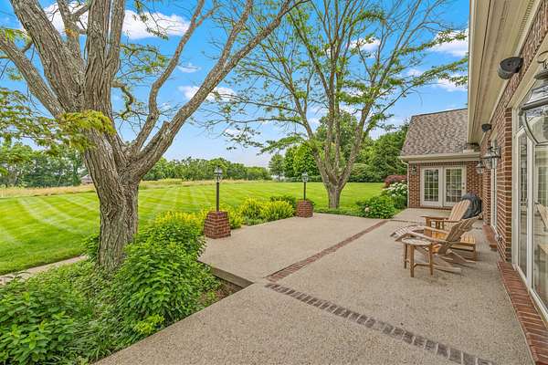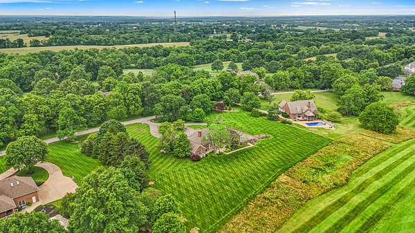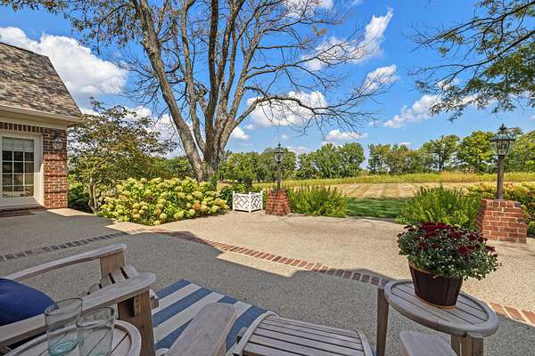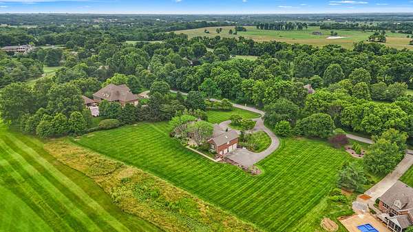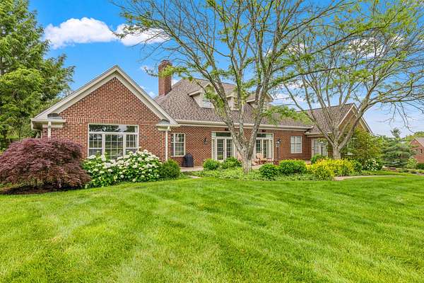 Luxury living at its finest.! This stunning home sits on 5 picturesque acres overlooking the 11th green of the prestigious Champions Golf Course, complete with a berm for added privacy. From the moment you step inside, you'll be captivated by the open and inviting floor plan, soaring 10 foot ceilings, and gleaming hardwood floors. The formal living room and dining room exude timeless elegance while the oversized kitchen is truly the heart of the home. The kitchen features granite countertops, newer appliances, a double oven, abundant cabinetry, a massive center island with seating area, and a stunning breakfast nook area with vaulted beamed ceilings. The expansive great room, anchored by stately built ins and a wood burning fireplace, offers the perfect retreat to relax and unwind. The first floor primary suite radiates light and luxury, boasting a spa inspired ensuite with a marble shower, free standing tub and double vanity. A second bedroom on the main floor is ideal for an in law suite. The third bedroom on the main floor is currently serving as a home office. A stylish half bath, picture perfect mudroom area, and an oversized utility room with closet complete the first floor. Upstairs you'll find two additional bedrooms with charming window seats that share a Jack and Jill bathroom with a tiled tub/shower combo. The lower level is an entertainer's dream with an oversized recreation area with a wood burning fireplace, home gym, bonus room that leads to the outside, a stunning full bath and abundant storage. Recent updates provide peace of mind, including a new roof (2025), two new heating systems, two new cooling systems, and a new water heater, all replaced about a year ago. With a neutral palette throughout, this home is move in ready and waiting for you. The professionally landscaped and peaceful property also boasts a robust garden full of herbs and vegetables. Enjoy luxury, comfort, and unmatched lifestyle in one of the most sought after locations in Nicholasville and only minutes from Lexington.
