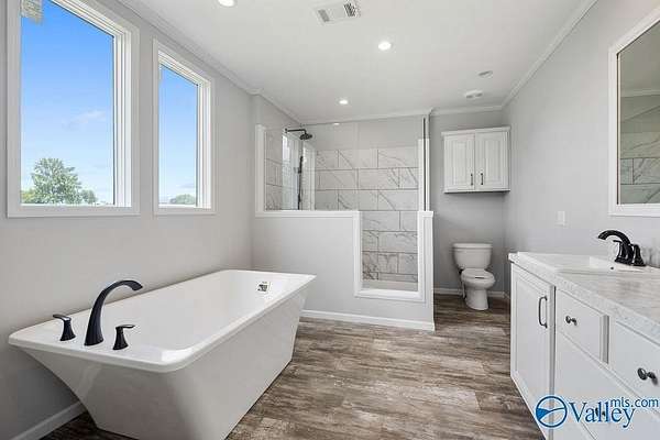 Est $1,201/moThis stunning 3 bed, 2 bath luxury manufactured home offers 1,890 sqft of beautifully designed space. The heart of the home is a spacious eat-in kitchen with stainless steel appliances, a large island with bar seating, and an open layout perfect for entertaining. A wood-burning fireplace adds warmth and charm to the living area. The primary suite features a soaking tub, oversized shower, and double vanity, while the second bath also includes a double vanity for guests or family. A bonus den offers flexible space for a home office or playroom. Enjoy peaceful mornings or evening gatherings on the large front porch.
