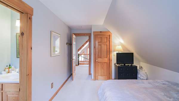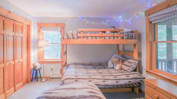 From Main Street in Ludlow, turn south on Depot Street. Continue up South Hill Road. Stay straight onto Town Farm Road. Turn right onto Snowbird Lane. Turn right onto Holly Lane. The house is at the end of the road.