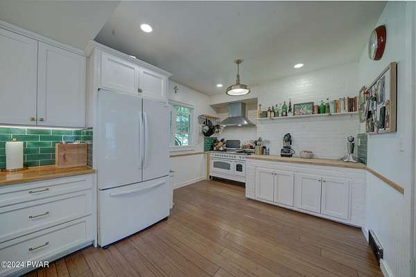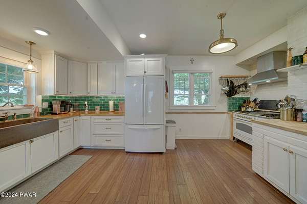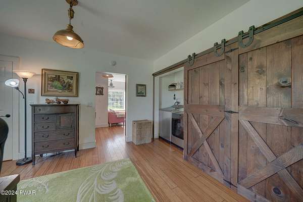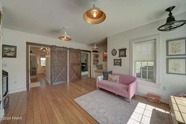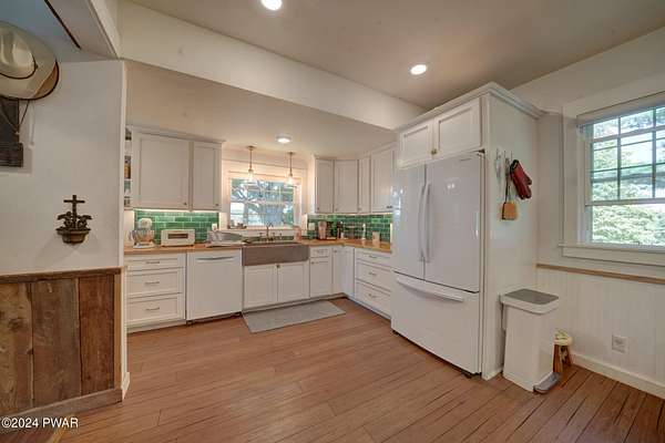 MODERN FARMHOUSE ON 175 ACRES Discover your own slice of paradise on this 175-acre property with a beautifully updated modern farmhouse. This charming 5-bedroom, 3-bath home features a bright, airy kitchen and a spacious living room/dining room area with a fireplace--perfect for relaxing evenings. The spacious entryway leads into a home with new windows, a stone-coated steel roof, and stylish bamboo flooring. Enjoy the blend of open fields and wooded areas, with a gentle stream running through the land. There's plenty of space for your animals with fenced pastures and a variety of fruit trees including over 30 wild blueberry bushes to enjoy. A detached 2-car garage/barn adds practicality to this serene setting. Embrace the perfect mix of modern comfort and natural beauty.