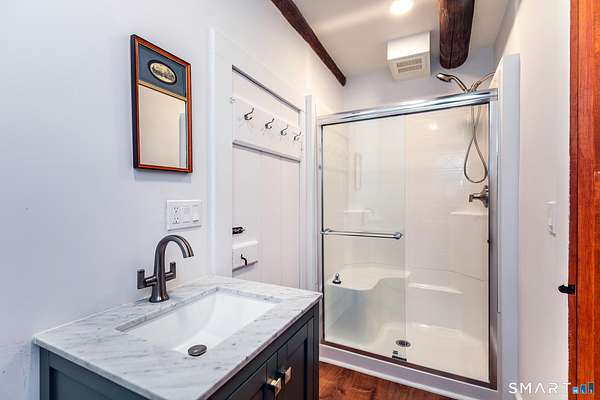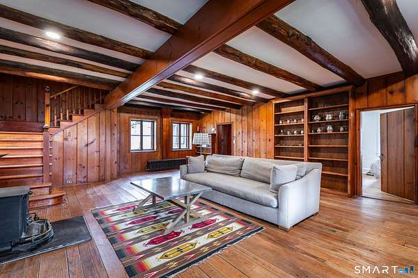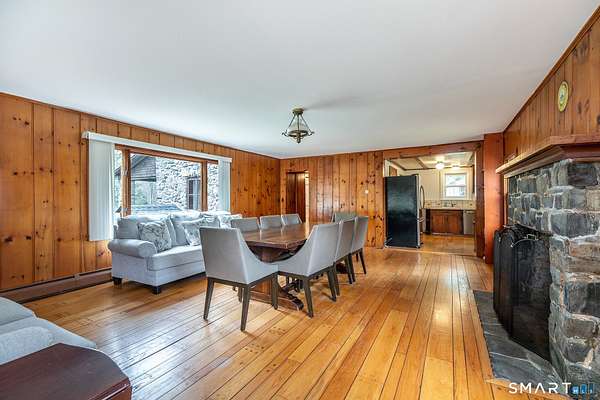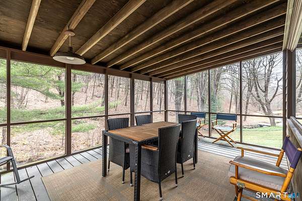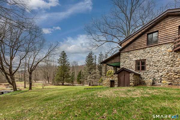 The perfect country retreat on 40+ private wooded acres with a mountain stream and hiking trails running through the property. This three-bedroom rustic cottage makes for an ideal country rental with a screen porch overlooking the running water, handsome exposed beams, wood-burning fireplaces, and a formal dining room for evenings in. The living room opens to a covered porch. One bedroom on the main level; the primary and third bedrooms up a level. Macedonia Brook State Park at your doorstep, the village of Kent minutes away, Metro-North close by, and New York City just two hours away when you need it.