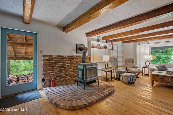 - Forced Air, Heat Pump, Oil, Wood, Wood Stove