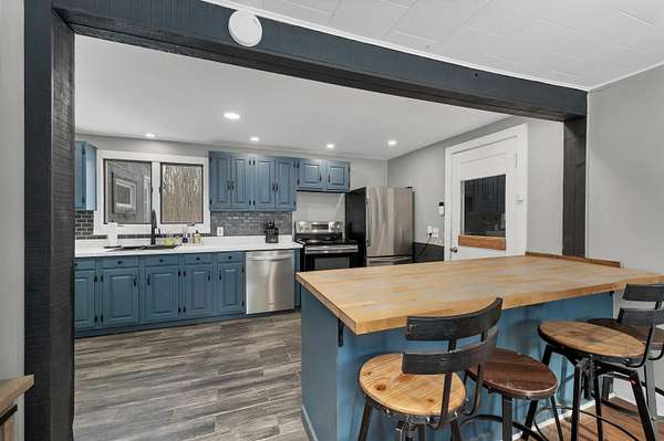 Charming 3-bedroom, 2-bath home set on 2.3 acres in highly sought-after Gilford, offering space, privacy, and a convenient location close to the Lakes Region's four-season amenities. Originally built in 1932, this home blends classic character with thoughtful updates, including a remodeled kitchen completed within the last five years. The layout includes a spacious kitchen, comfortable family room, and an open and bright dining room highlighted by bay windows. A wood stove provides warmth and ambiance, complemented by forced hot air heat by oil. The home features a full walk-out basement, an attached one-car garage, and private well and septic systems. Surrounded by natural beauty and abutting approximately 50 acres of wooded land, the setting offers a peaceful backdrop while remaining close to everyday conveniences. Located approximately 5.5 miles from Gunstock Mountain Resort, 2 miles from Gilford Town Beach on Lake Winnipesaukee, 2.5 miles from Bank of NH Pavilion, and 2.6 miles from Gilford High School. Liberty Hill is a town-maintained road.A solid opportunity for buyers seeking acreage, privacy, and proximity to everything the Lakes Region has to offer.