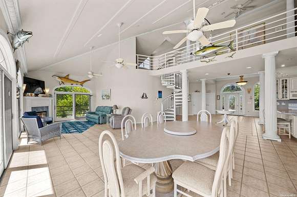 Experience the ultimate in serene waterfront living***with this nearly 8-acre custom-built residence on the Great South Bay. This unique 5-bedroom, 2.5-bathroom home offers a perfect blend of luxury and comfort, featuring nearly 3,600 square feet of beautifully designed living space. Enjoy the convenience and privacy of a main-level master suite. Custom-built kitchen and formal dining room perfect for everyday meals and grand gatherings. Cozy up in the inviting family room with a fireplace, or unwind in the additional living room also featuring a fireplace. Versatile loft area or family room with a stunning spiral staircase leading to the crow's nest, where you can enjoy panoramic views. Plenty of room for guests or staff accommodations. Comfort year-round with central air and ample storage space. Outdoor living made easy - Relax and entertain in your private in-ground pool. and Outdoor Shower, Conveniently located for a refreshing rinse after a swim. Custom Moldings Throughout, Exquisite craftsmanship and attention to detail. This one-of-a-kind property is not just a home; it's a lifestyle. Don't miss your chance to own a piece of paradise on the Great South Bay, Additional information: Appearance:Excell+,Interior Features:Guest Quarters