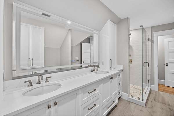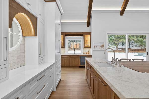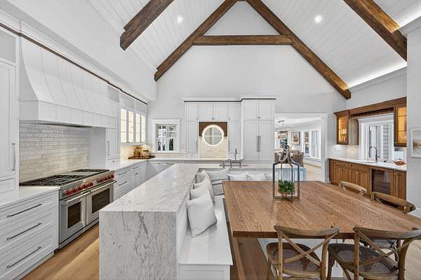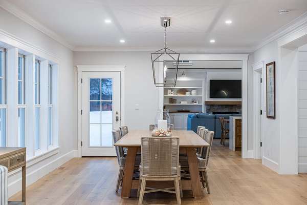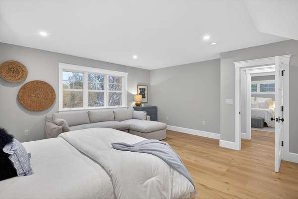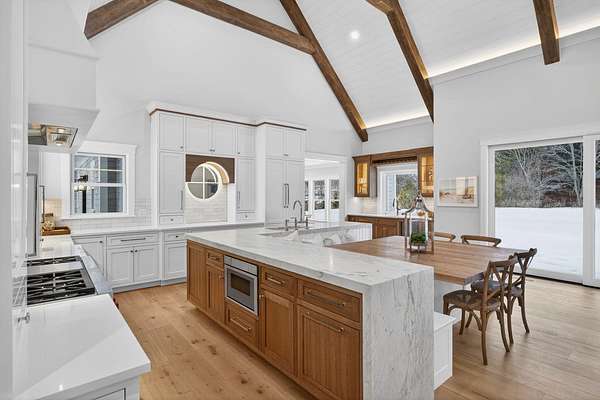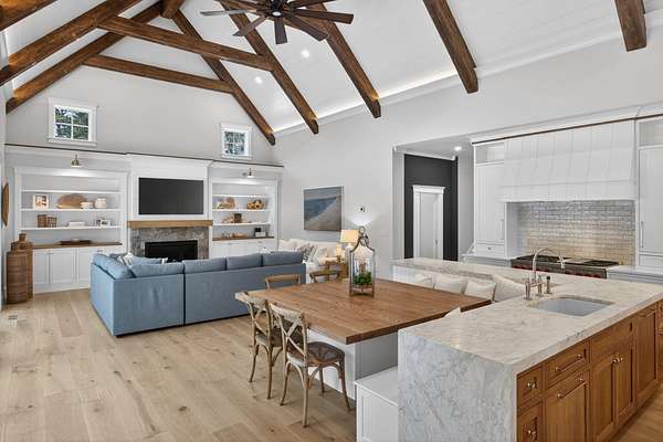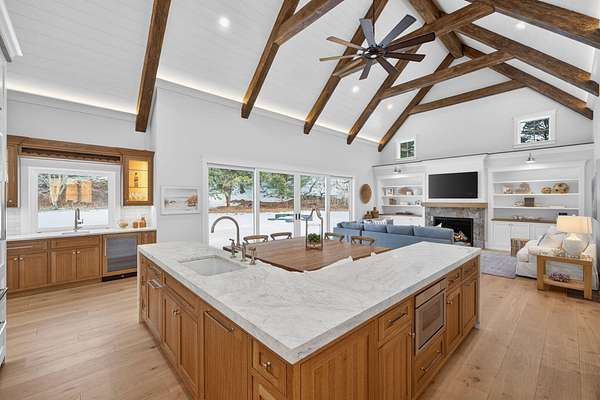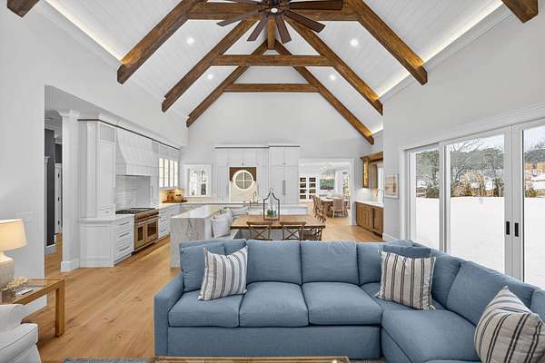 Set within a private gated enclave in South Chatham's emerging luxury corridor, 48 Sylvan Way is a singular estate retreat discreetly positioned just moments from the Cape's most iconic downtowns, beaches, and dining. Encompassing 1.63 acres with exceptional usability and recreational potential, the property offers rare privacy, scale, and versatility in one of Chatham's most compelling locations. Spanning 5,700 square feet across twelve rooms, this bespoke new construction residence showcases custom craftsmanship and intentional design throughout, conceived for refined, generational living. Three distinct bedroom wings-including two separate upper-level guest wings-provide exceptional comfort and separation, with each bedroom generously proportioned and ensuite. At its heart, a breathtaking great room anchored by a custom-designed kitchen rises to 23-foot ceilings adorned with shiplap ceilings, reclaimed beams and a fireplace, while an 18-foot wall of glass opens seamlessly to the heated saltwater pool and patio for effortless indoor-outdoor living. A rare offering defined by craftsmanship, presence, and intention-modern Cape Cod estate living at its most elevated.