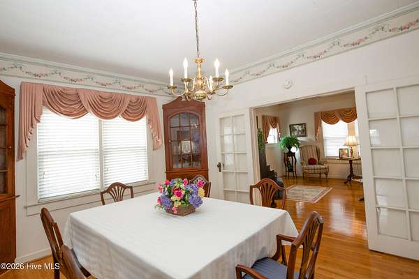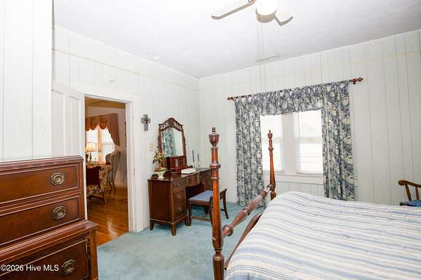 Step back in time and discover the charm and history of this unique farmhouse, originally the Yadkin Hill School, before being thoughtfully converted into a home in 1925. As you enter, you're welcomed by beautiful hardwood floors and a warm, inviting layout. The main level features a spacious first-floor primary bedroom along with a second bedroom, offering convenience and flexibility. Just beyond, the formal dining room showcases classic built-in corner cabinets, creating the perfect space for gatherings. The large kitchen offers plenty of room to cook and entertain, complete with a cozy breakfast nook and a convenient laundry area nearby. Upstairs, two additional bedrooms provide space for family, guests, or a home office. Outside, the property truly shines with approximately 24.8 acres of mostly fenced land surrounding the home, ideal for farm animals or recreation. A paved driveway leads to a detached two-car garage, while an attached one-car carport adds additional convenience. Enjoy peaceful country living with your own stocked one-acre pond, perfect for fishing or simply relaxing and taking in the beautiful surroundings.