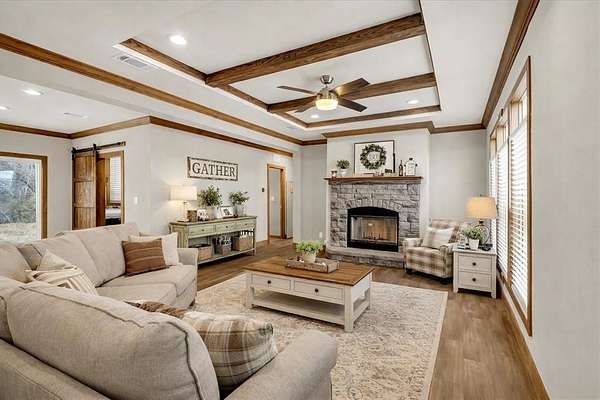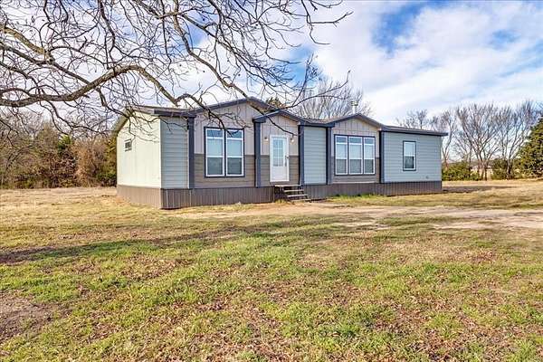 Like new 2023 manufactured home on 11.5 acres in Sadler, Texas, offering modern comfort with true country living. This 3 bedroom, 2 bathroom home with a split floor plan sits on ag exempt land with pipe fencing and cattle fencing, ready for horses, cows, or livestock. The open living area features a cozy wood-burning fireplace and flows into a stylish kitchen with granite countertops and stainless steel appliances. A large laundry room with a barn door adds both function and charm, and the washer, dryer, and refrigerator are included. The private primary suite offers a spacious bathroom with a large walk in shower, creating a relaxing retreat. The split bedroom layout provides added privacy for family or guests. Outside, enjoy wide open pasture, fencing already in place, 50 amp RV service, and plenty of room to build, ride, or roam. This property is ideal for those seeking a North Texas ranch style property or a peaceful rural lifestyle. Conveniently located between Gainesville and Sherman and just minutes from Lake Texoma, this home offers the perfect balance of privacy, accessibility, and recreation.