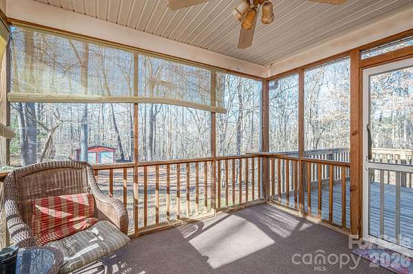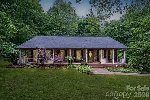Surrounded by 8.6 wooded acres, this home offers a peaceful, private setting with a welcoming full-length front porch. This three bedroom/2 bath home has a split floorplan. The living room features a large brick fireplace with gas logs and a back door leading to a screened porch overlooking the property. Kitchen includes a breakfast area and bar, creating a functional layout for everyday living. A full unfinished basement offers high ceilings, a wood stove, two garage doors, and abundant storage. Additional storage is available in the backyard outbuilding. The seller previously added additional foundation support. Portions of the land are in a flood plain. Recent interior updates include new carpet in all bedrooms, fresh paint in several rooms, and a new hot water heater installed in December 2025. In the past month, the sellers completed extensive maintenance and improvements, including installation of a French drain line in front of the home, repairs to the front porch, leveling the concrete and painting porch and porch floor. Gutter cleaning, installation of a drainpipe and sealed wall on the left side of the home, driveway and sidewalk pressure washing, reseeding of the front yard, construction of a berm around the front and side of the home. A screened back porch, deck area, basement storage, and expansive acreage make this property a great opportunity for those seeking space, privacy, and long-term potential. Items that need to be repaired are: No cap on chimney, 1 garage door in need of repair, exterior outlets not working and need covers, laminate floor peeling in some spots, broken seal on window in living room, range has broken door hinge and broken front glass, guest bathroom is missing sink stopper. The power of attorney for the seller has never lived in the home.