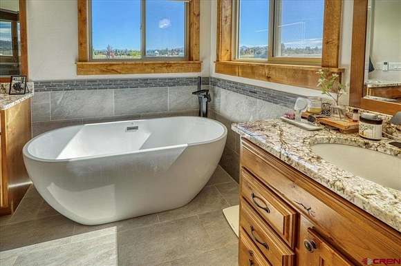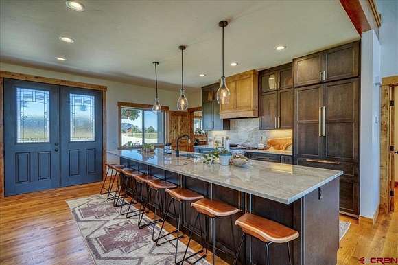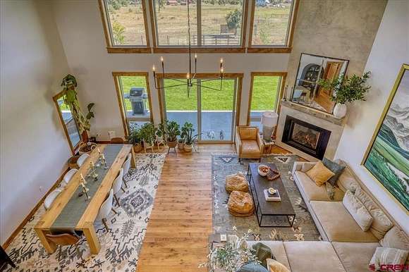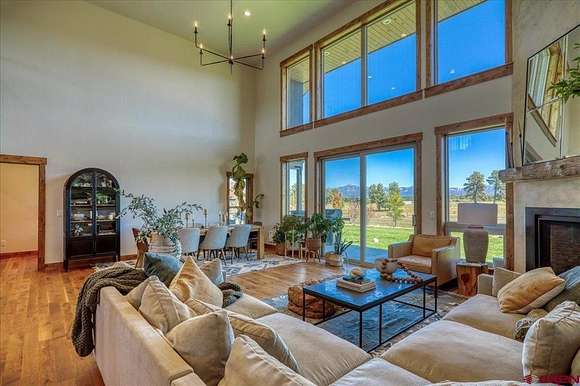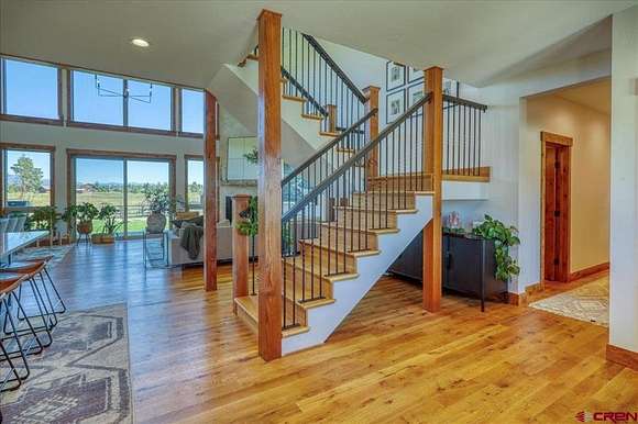 Michael D Knapp, Best of Pagosa Springs, C: 970-903-3431, mike@bestofpagosasprings.com, www.bestofpagosasprings.com: This one-of-a-kind horse property in Pagosa Springs combines stunning mountain views, high-end remodels, and exceptional functionality across both home and acreage.At the heart of the home, the beautifully remodeled kitchen is a showstopper--featuring updated cabinetry, paneled refrigerator, gas stove, and an oversized island that seats eight. It's the perfect gathering space for family and friends while enjoying panoramic mountain views. The open-concept living and dining area flows effortlessly from the kitchen, highlighted by a striking floor-to-ceiling fireplace and custom mantle that add warmth and style to every gathering.The living space is bookended with two luxurious primary suites that provide peaceful retreats, thoughtfully positioned at opposite ends of the home for privacy. Each features an oversized walk-in closet, dual vanities, freestanding soaking tub, and spacious walk-in shower. Opening directly onto a private patio--ideal for morning coffee or unwinding at sunset with breathtaking views.Upstairs, a versatile flex space offers endless possibilities, complete with a front balcony that overlooks the property--perfect for a home office, game room, media room, additional sleeping area, fitness area or children's play area.Off the kitchen, a large laundry and mudroom includes two pantries, ample storage, and a utility area with a nearly new water heater. The heated three-car garage, accessed through this space, provides plenty of room for vehicles, tools, and equipment. Down the hallway are two additional light-filled bedrooms, along with a full bath and am additional half bath.Step through the grand sliding doors from the living room to a beautifully maintained backyard featuring lush irrigated green grass and a spacious covered patio--perfect for outdoor entertaining. The fenced backyard includes a dedicated dog run, while the entire property is enclosed for horses and livestock.A brand-new concrete roundabout driveway, added in 2024, enhances both convenience and curb appeal and provides a mud free route to the newly built (2024) 40x80 custom metal barn is a true highlight. Designed with 21-foot side walls, it offers garage space for two A-Class RVs, heavy equipment, or outdoor toys with additional space for a workshop, and a 40x20 mezzanine apartment, office, or studio complete with plumbing from an endless water heater and solar--offering additional guest quarters or rental potential. A 10x40 loft completes the setup with ideal storage for feed and supplies.With luxurious interiors, panoramic mountain views, this remarkable property perfectly balances modern design with mountain lifestyle--an exceptional opportunity in Pagosa Springs.