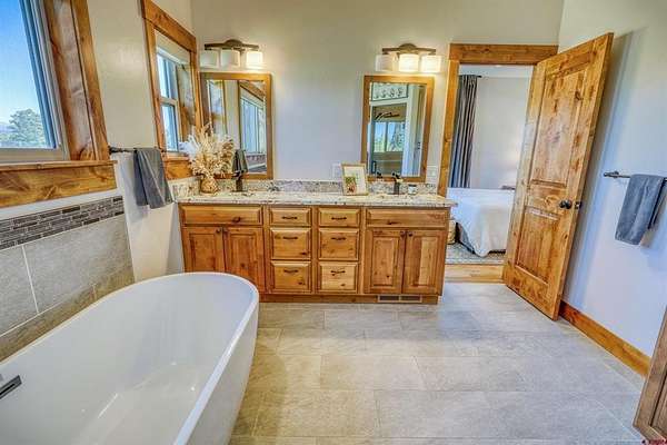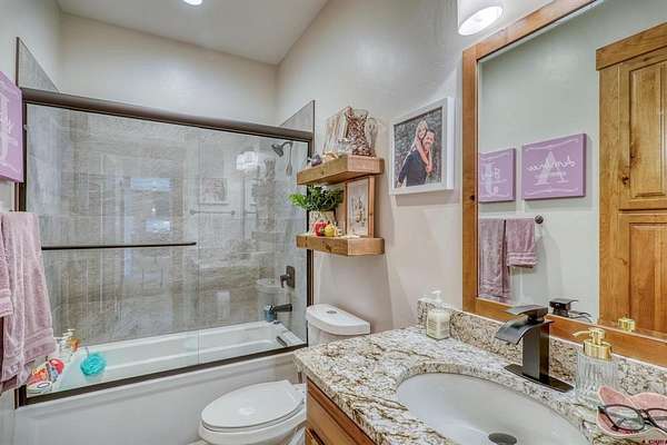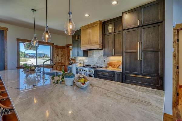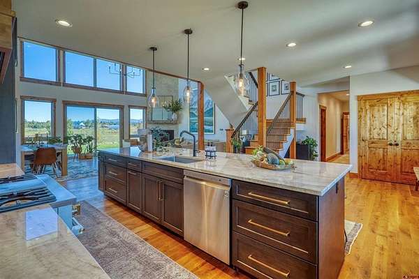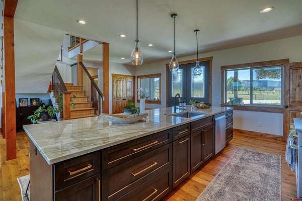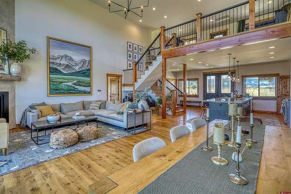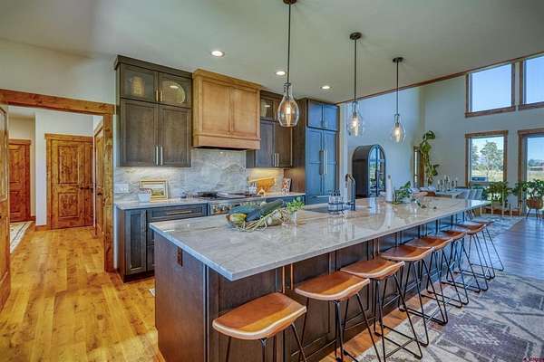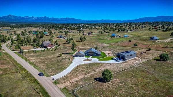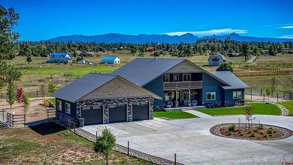 Michael D Knapp, Best of Pagosa Springs, C: 970-903-3431, mike@bestofpagosasprings.com, www.bestofpagosasprings.com: 480 Scenic Drive | Pagosa SpringsIf mountain views, room for your horses, and space for all the toys are on your wish list--this one checks boxes you didn't even know you had.This one-of-a-kind Pagosa Springs horse property blends panoramic San Juan Mountain views with high-end remodels and serious functionality, both inside the home and across the acreage.The heart of the home is a jaw-dropping, fully remodeled kitchen designed for gathering. Featuring custom cabinetry, a paneled refrigerator, gas range, and an oversized island that seats eight, it's the kind of space where everyone naturally ends up--especially when those mountain views steal the show. The open-concept living and dining area flows seamlessly from the kitchen and is anchored by a dramatic floor-to-ceiling fireplace with a custom mantle that adds warmth, character, and just the right amount of wow.Flanking the living space are two luxurious primary suites, thoughtfully placed at opposite ends of the home for maximum privacy (because even housemates who love each other need space). Each suite features an oversized walk-in closet, dual vanities, a freestanding soaking tub, and a spacious walk-in shower. Both open directly onto private patios--perfect for sunrise coffee, sunset wine, or quietly questioning why you ever lived anywhere else.Upstairs, a versatile flex space with a front balcony overlooks the property and surrounding mountains. Whether you need a home office, media room, game room, fitness area, additional sleeping space, or kid-approved play zone--this space is ready to adapt.Just off the kitchen, a generous laundry and mudroom delivers two pantries and a utility area with ample storage --because mountain living works best when it's organized. From here, access the heated three-car garage with plenty of room for vehicles, tools, and gear. Down the hall are two additional light-filled bedrooms, a full bath, and an additional half bath to keep mornings moving smoothly.Step through grand sliding doors from the living room into a beautifully maintained backyard with lush, irrigated green grass and a spacious covered patio made for summer dinners and fall evenings. The fenced backyard includes a dedicated dog run, while the entire property is fully enclosed and ready for horses and livestock.The brand-new concrete roundabout driveway adds curb appeal and a mud-free welcome home, leading you to the show-stopping 40x80 custom metal barn built in 2024. With 21-foot sidewalls, it offers garage space for two Class-A RVs, heavy equipment, or all the mountain toys you've been collecting excuses for. There's also room for a workshop, plus a 40x20 mezzanine apartment, office, or studio complete with plumbing, an on-demand water heater, and solar--ideal for guests, rental income, or the ultimate workspace. A 10x40 loft provides additional storage for feed and supplies.With luxurious interiors, expansive views, and infrastructure that actually supports the mountain lifestyle, 480 Scenic Drive isn't just a home--it's a basecamp for how you want to live in Pagosa Springs.