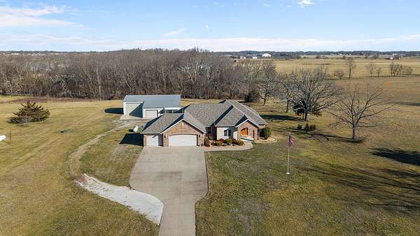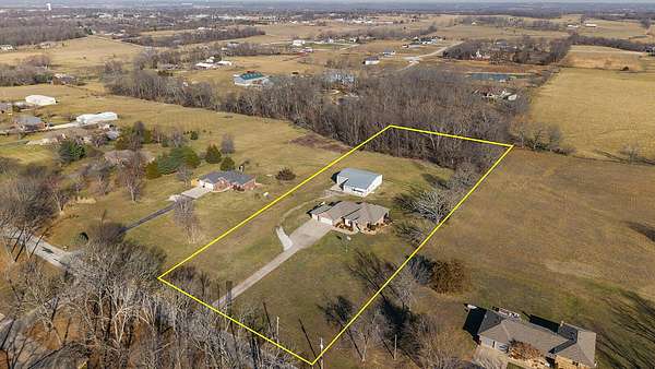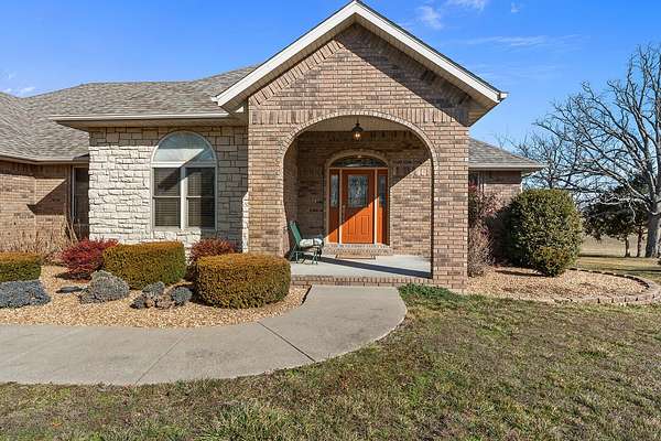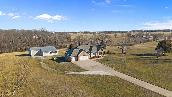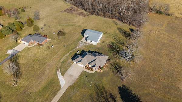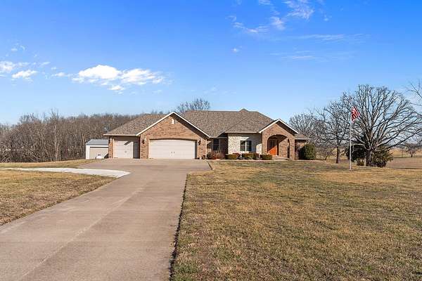 Pride of ownership shines from the moment you enter this Ozark country retreat. This all-brick walk-out basement home has been lovingly cared for and offers space, functionality, and classic timeless appeal that is always in style.Featuring 4 bedrooms, 3 baths, two fireplaces, and multiple living areas, this home was designed for comfort and entertaining alike. Hardwood floors, solid oak doors, and thoughtful details create a warm, inviting 'feels like home' throughout. The kitchen offers solid surface countertops, double ovens, a breakfast nook, hearth room, and formal dining -- perfect for gatherings big or small. Add in a water softner and brand NEW roof complete with warranty for piece of mind.Step outside to a screened-in lanai and covered outdoor spaces ideal for soaking in the natural beauty of the Ozarks. Downstairs you'll find incredible versatility with a walk-out basement, wet bar, exercise room, John Deere room, storm shelter, and storage galore.And the shops? Not one... but TWO! A 40x60 workshop with heated and cooled finished space, bathroom, and 14-ft sidewalls plus an additional 20x38 shop -- offering endless possibilities for hobbies, business, or extra storage.Enjoy room to roam while still being conveniently close to town. This is the perfect blend of peaceful country living and everyday convenience -- and it's truly a must-see!