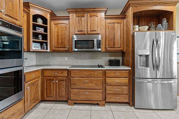 - Dishwasher, Disposal, Double Propane Wall Oven, Electric Cooktop, Electric Water Heater, Microwave, Refrigerator