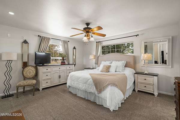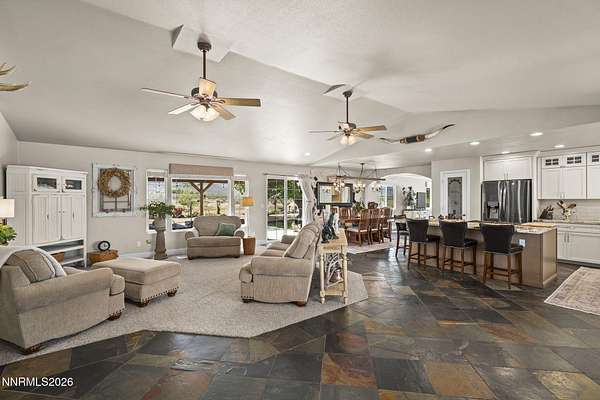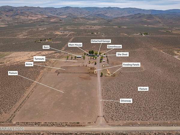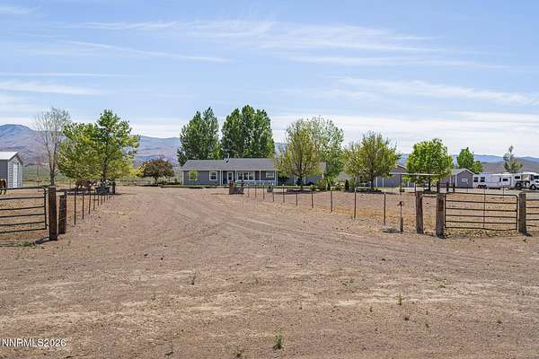 Income producing property, providing an opportunity to offset your expenses. This exquisite, custom-built home by the original owners is nestled peacefully on a working hobby ranch on 40+ Acres in Palomino Valley. Built to entertain & impress, this home welcomes you into an oversized great room featuring large, picturesque windows highlighting the immaculate endless views. The fully remodeled kitchen features custom Omega soft-closing cabinets with custom pull-outs, granite countertops, 6-burner gas cook top, an oversized island, built in convection microwave and oven, and smart refrigerator. The large dining space and kitchen provide an abundance of natural light, all while capturing the stunning views and breathtaking sunsets as you look out into your pristine fully landscaped front & backyard! Sitting on 40.21 acres, the serenity is indescribable, with mature landscaping, lush green grass, an oversized patio, fire pit and pergola! Not to mention, raised garden beds, a greenhouse and personal she-shed, adding to the charm of the property. The home was expanded through a 610 square-foot garage conversion which provides a thoughtfully designed living space finished off with slate flooring throughout. At the end of a long day, you can retreat into your primary suite, featuring a large walk-in shower with custom tile finishes and a single vanity. The separate utility/laundry room includes upper cabinets with a separate sink. Oversized, 2-car garage, plus additional detached 30x50 barn/shop for housing your farm equipment, RV's, recreational toys and so much more. This meticulously maintained property blends quality with functionality. Your outdoor experience is like no other with secure fencing, automated landscaping, equestrian facilities, 270x140 de-rocked roping arena, three 80x140 turnout areas with shade, a tack room and so much more. This exceptional property offers a rare blend of country living, recreation and natural beauty! Endless custom interior features throughout the home, including vaulted ceilings, custom built window seat with storage, luxury slate flooring, new LED can lights, ceiling fans throughout, custom window coverings, new central HVAC (2024), whole house water filtration system, upgraded carpet (2024). Working Hobby Ranch and Exterior Features include: gravel driveway, rain gutters with French drains, power source runs underground, private well with excellent water quality, well pump and wire replaced (2020), new pressure tank (2020), 200 AMP main service, 100 AMP sub in detached barn, 100 AMP sub in house, 40 AMP sub in garage, 30 AMP RV hook-up, RV Dump, 30x50 Barn, 12x20 insulated storage shed, 8 frost free hydrants, 270x140 Roping arena, 10 foot wide return ally, three 80x140 turnouts with shade, 2 feedlots and holding pens, 2 large pastures, turn outs with feeders and squeeze chute, heavy duty cattle load out, concrete water trough pads, barbed wire fencing and cross fenced. Not to mention, all banded panels to stay with the property.