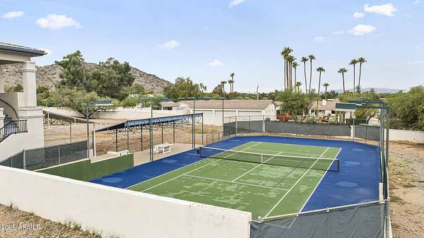 Nestled on an ultra-rare 2.1-acre parcel in Paradise Valley-a size no longer permitted-this grand 13,701 sq ft estate offers endless opportunity to create a timeless masterpiece. Exceptionally overbuilt with 12'' interior walls, dual-pane windows, and energy-efficient systems, this home provides unmatched structural integrity. Inside, expansive living spaces, formal and casual rooms, and a billiards area await your luxury redesign. Featuring six bedrooms, 8.5 baths, an elevator, and multiple stairwells. For car enthusiasts, enjoy climate-controlled garage parking for over 12 cars, a full RV garage with gate access, and abundant slab parking. Outdoors, experience panoramic Mummy Mountain views, a lighted tennis court, and the freedom to craft your private resort oasis.