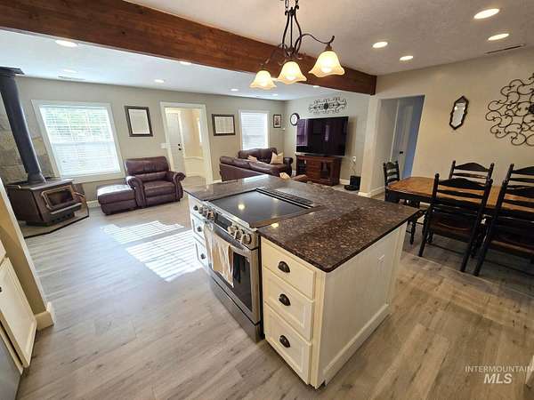 Experience the best of Idaho living! This beautifully updated 4-bedroom, 2.5-bath home offers 1,873 sq ft of comfort on 10 acres-perfect for horses, hobbies, and wide-open country living. Inside, you'll love the open floor plan and remodeled kitchen featuring granite countertops, a large island, and new flooring. Recent upgrades throughout the home include all-new carpet, updated flooring, brand-new showers/tubs, and new toilets, giving the home a fresh feel. The property also includes a detached 2-car garage with an insulated room and a climate-controlled shop with a wood stove-ideal for projects, storage, or workspace. Enjoy your private shooting range and easy access to the Payette River nearby, making this a dream property for anyone seeking space, privacy, and Idaho adventure right out their back door.