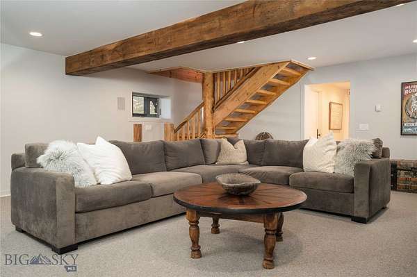 Welcome to Incognito Ranch, where elevated luxury pairs seamlessly with the rustic soul of a Montana guest ranch. This spectacular 4-bedroom lodge-style residence spans 8,524 SF, accompanied by a 1,172 SF attached art studio/guest apartment, all set on 29.99 acres of pure serenity overlooking the iconic Bridger Mountains. Recently refreshed throughout, the home feels both timeless and new. The grand, light-filled entry sets the tone, warm, inviting, and dramatic. The main-floor primary suite lives like a private retreat, featuring a spa-inspired bath with a copper soaking tub, an elegant custom closet, sitting area with wood-burning stone fireplace, covered balcony, and unobstructed mountain views. The main level continues with two additional bedrooms connected by a jack-and-jill bath, a stately Great Room with floor-to-ceiling windows, a beautifully appointed kitchen with walk-in pantry and temp-controlled wine room, and a dream laundry/mudroom with dual washers/dryers, lockers, and powder bath. The upper floor hosts another bedroom, full bath, and cozy library/TV room. The lower level offers a spacious family/game room with kitchenette, 3/4 bath with sauna, home gym, and generous bunk room opening to a screened porch, perfect for guests or large gatherings. Beyond the home itself, the garage spaces elevate the property to a new level. In addition to the 4-car heated garage, a 2,100 SF shop was added with an 800 SF art studio above. With 3,600 SF of heated garage space total, this is a paradise for car collectors and recreation enthusiasts: epoxy floors, LevRack system, auto lift, workshop with sink and laundry, and pull-through bays. The art studio, private yet connected, was designed for creativity, solitude, and inspiration. Step outside and Montana takes over. Bask in sweeping views of the Bangtail and Bridger ranges. Cast a line in your stocked pond from the private dock. Explore your own hiking, snowshoeing, and ATV trails. Horse lovers will appreciate two pastures, a 5+ stall barn with tack room and wash rack, hay barn, two turnout paddocks with year-round auto waterers, and a 100x200 outdoor arena with specialized footing. A nearby guest/caretaker cabin and separate guest bath enhance the ranch experience. Incognito Ranch is a rare blend of luxury, privacy, recreation, and breathtaking mountain beauty. A true sanctuary and an opportunity not to be missed.