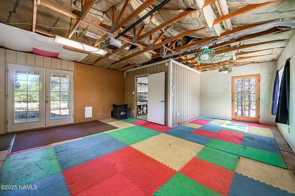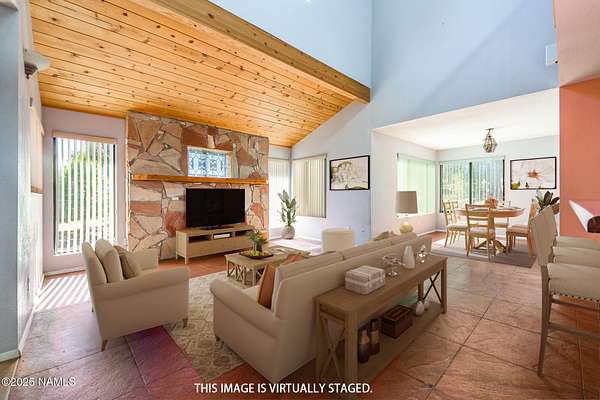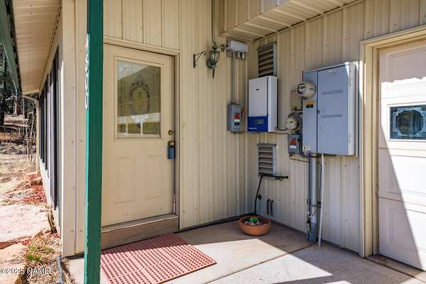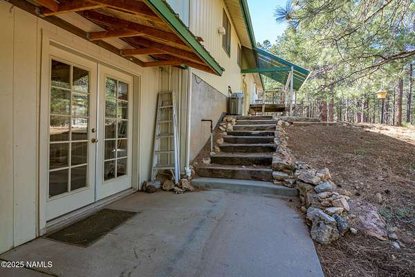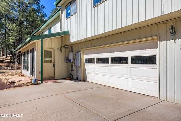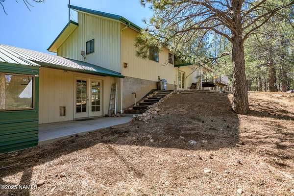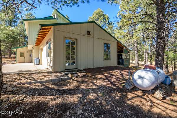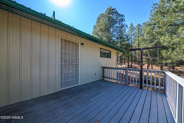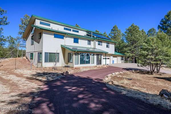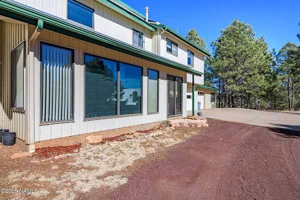 - MOTIVATED SELLERS- Exceptional Living Awaits: Energy-Efficient Home on 2+ Forest Acres Embrace sustainable luxury with this solar-powered, energy-efficient home amidst towering pines. Features hydronic heating, 4 BR, 2.5 BA, office & spacious principal suite with a soaking tub & walk-in closet, this home blends comfort with elegance. Vaulted ceilings & an open design enhance the airy, inviting atmosphere. Expansive kitchen, with a large island & HUGE pantry, sits at the heart of the home. A sunlit vestibule (perfect for plants) & a Trombe wall-warmed living room add eco-friendly charm. 2+ acres by the national forest on 2 sides, enjoy direct trail access to Arizona Trail, Fisher Point & Walnut Canyon. Read more... Outdoor perks include a stone fire pit, star-gazing balcony, & frequent wildlife sightings Additional amenities include a 3-car garage, workbench, entertainment space, & covered shed. Modern luxury fused with natural beauty in this unique retreat located on serene Wildlife Drive with breathtaking forest views.
