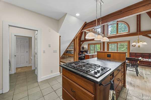 Tucked away in West Lafayette, this stunning 5-bedroom, 2.5-bath home offers a rare blend of rustic charm and modern comfort. Step inside to a soaring great room with peaceful pond views and one of two cozy wood-burning stoves. The open layout flows beautifully into the dining area and a well-equipped kitchen featuring an in-wall oven, built-in gas grill, and stainless steel refrigerator--perfect for everyday living or entertaining. Upstairs, you'll find a spacious two-bedroom loft and a bonus finished attic space that offers endless possibilities, including a potential primary suite retreat. The main floor ensuite boasts two generous walk-in closets, offering comfort and convenience. Downstairs, the walk-out basement features a functional workshop, abundant storage, and a third wood-burning stove. Step outside to a composite deck overlooking the backyard and tranquil pond--ideal for morning coffee or summer gatherings. This one-of-a-kind home is more than just a place to live--it's a lifestyle.
