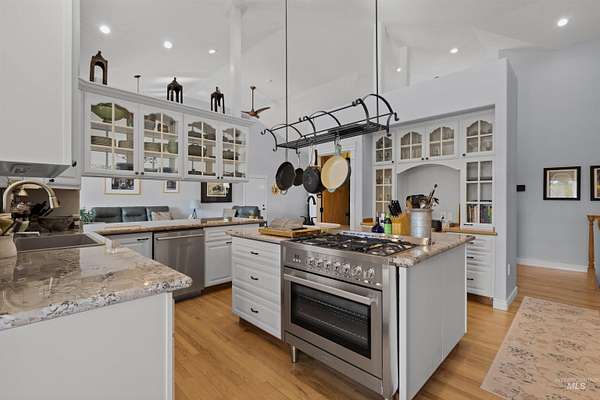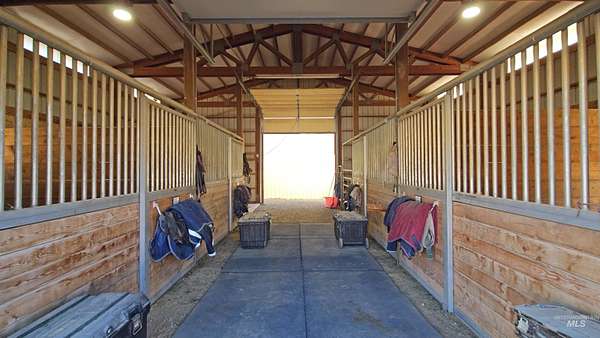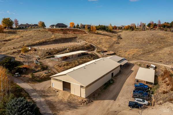 Treasure Valley Equestrian Paradise! This remodeled estate offers over 6,000 sq ft of luxury living between the main house and guest house. Vaulted ceilings, hardwood floors, a chef's kitchen featuring solid-surface counters and top-tier appliances, a serene master retreat, main-level office, and multiple spacious living areas. Enjoy breathtaking views of Bogus Basin, the Owyhee Mountains, and the rolling hills of Star from the expansive wraparound covered deck overlooking multiple fenced pastures. A modern guest house is perfect for guests and staff providing comfort and privacy with solid-surface counters, Pergo flooring, and en-suite baths for each bedroom. Additional amenities include a detached 30x20 garage, 40x30 RV carport, and a 3-car garage at the main residence. For the equestrian enthusiast, the property boasts a 7,200 sq ft covered riding arena with lighting, a 193x91 sand arena, and a third riding arena nearly an acre in size also with panoramic mountain views. Over 35 stalls, tack rooms, multiple pasture areas, rider locker room, equestrian office and bathroom.