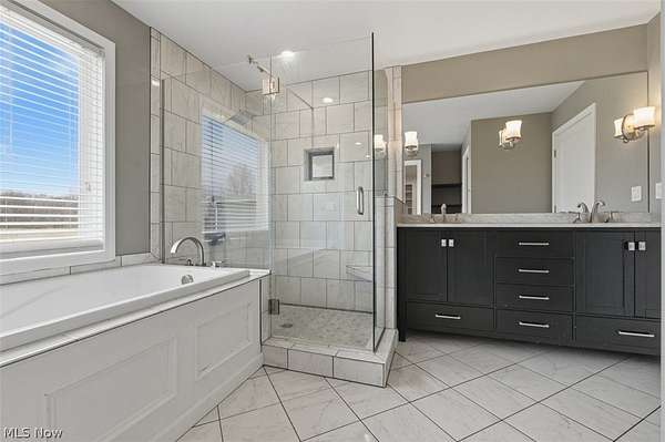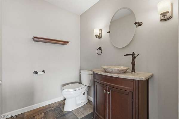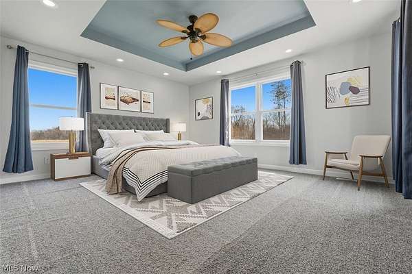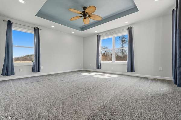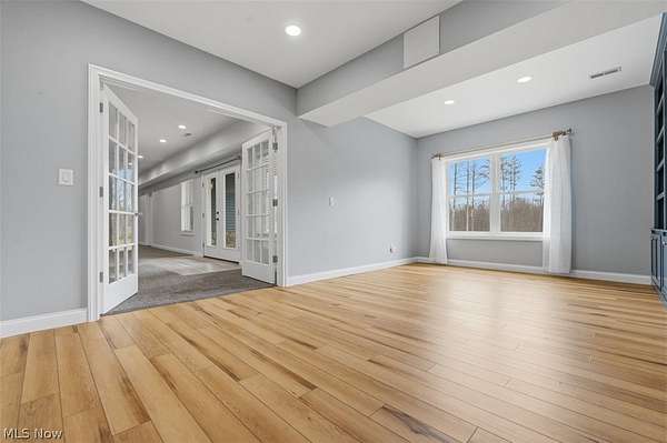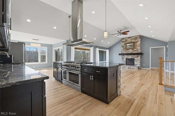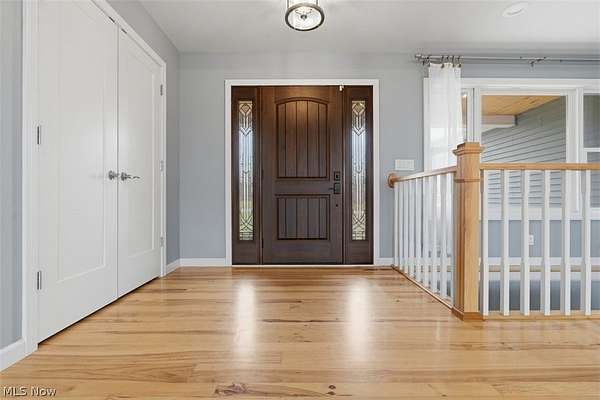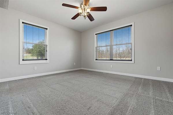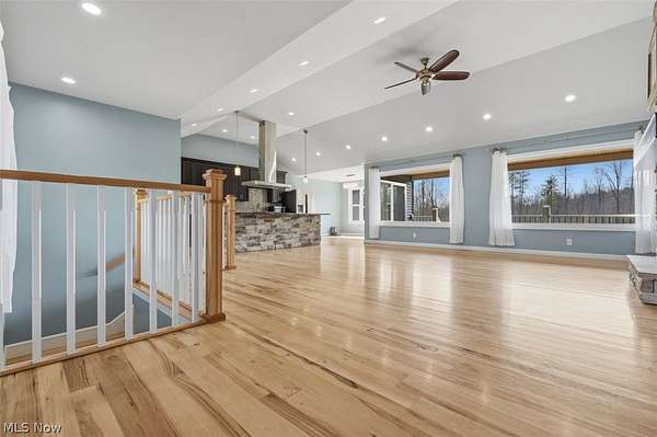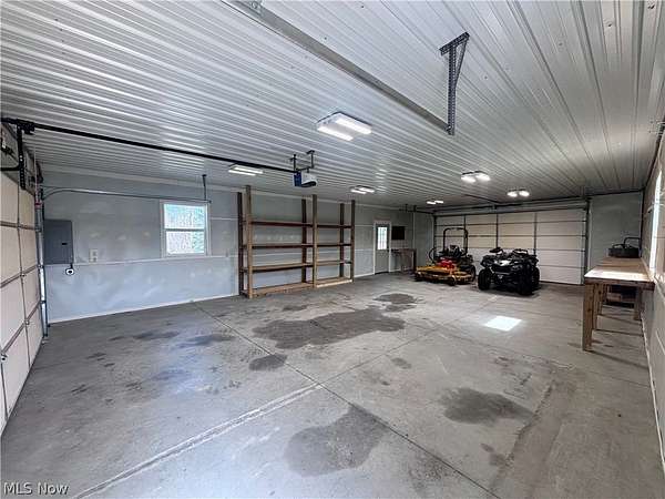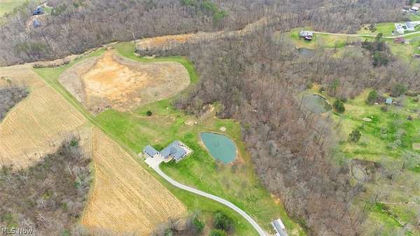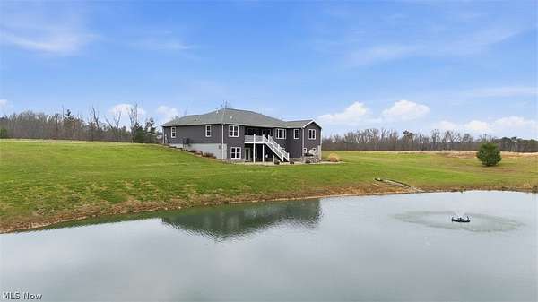 Built in 2016, this stunning property truly offers the complete package: acreage, space, desirable school district, and the convenience of one-floor living. Sitting on nearly 20 acres in the sought-after Warren Local School District, the land showcases a picturesque blend of open, level pasture, mature woods with groomed trails and a large, stocked pond. Step inside to a spacious, open-concept layout designed for both everyday living and entertaining. The seamless flow between the kitchen, dining, and living areas is enhanced by vaulted ceilings, rich hickory flooring, and a striking stacked stone fireplace. The generously sized primary suite offers a private retreat, complete with a massive walk-in closet and a beautifully appointed walk-in shower with custom tile. Just off the oversized two-car garage, you'll find a convenient half bath and laundry room. Two additional bedrooms share a Jack-and-Jill style bathroom, rounding out the main level. The expansive, full walk-out basement adds an impressive 2,492 square feet of finished living space. Here you'll find a thoughtfully designed layout featuring a recently added library with beautiful floor to ceiling custom shelving, a large family/media room, craft room, workout room, ample storage, two additional bedrooms with egress, and a full bath, making it great for guests or extended living. A standout bonus is the 20x40 detached garage, offering possibilities for hobbies, storage, or workshop space. Outdoor entertainment opportunities abound with a large covered deck located just off the dining room, and a partially covered lower patio located off the walk-out basement. If you have been looking for a low maintenance home with acreage in the Warren Local school district, this home is one you won't want to miss. Schedule your private showing today!