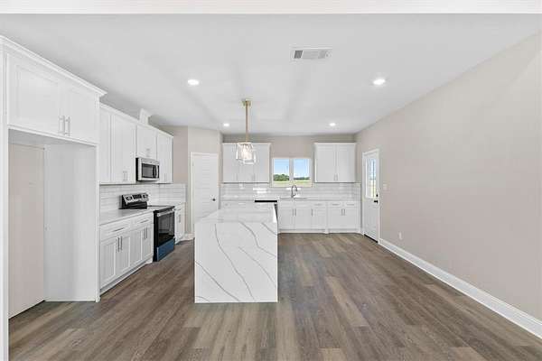 Discover the perfect blend of comfort and tranquility in this brand-new, traditional single-family home. Situated on a sprawling 2-acre lot, this 3-bedroom, 2-bathroom gem offers approximately 1600 sq ft of meticulously designed living space. Step inside to find durable vinyl plank flooring flowing throughout the open-concept layout. The kitchen, boasting gleaming quartz countertops, a large island with a chic light fixture - perfect for entertaining! The master suite provides a walk-in closet and a contemporary stand-up shower. Enjoy year-round comfort with ceiling fans in all bedrooms and the living area. Outside, relax on your inviting covered front porch or the charming small patio. A long driveway leads to a detached two-car garage, providing ample parking and storage. Experience peaceful country living with the convenience of quick access to the highway, retail stores, and a variety of restaurants. This is an incredible opportunity to embrace a serene lifestyle without sacrificing modern amenities! BUYER AND BUYER AGENT TO VERIFY ALL INFORMATION AND MEASUREMENTS!