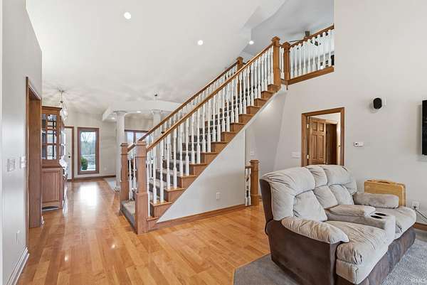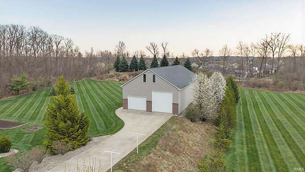 Start Showing Date: 4/11/2026 A Rare Opportunity. Custom-Built Ranch with City Water, City Sewer, and No HOA on 10.15 private acres yet minutes from Dupont/I-69. A stocked 1-acre pond, 70x35 outbuilding, and irrigated garden create an exceptional lifestyle and abundance of nature! Inside, a thoughtfully designed open layout is anchored by a 17x16 chef’s kitchen with oversized gathering bar, abundant prep space, and walk-in pantry. The main level features 3 bedrooms including a large primary suite. The walk-out lower level is built for entertaining with a full bar, plus expansive living space, 4th bedroom, and two additional rooms ideal for crafts, hobbies, or a home gym. Enjoy morning coffee or evening sunsets from the covered porch overlooking the pond. Upper loft offers flexibility for office or guests. Additional features include unfinished space under porch for wine cellar or storm shelter, and oversized garage with pet wash, heater, and walk-up attic. Conveniently located Minutes from Hospitals & Dupont/I-69 area.