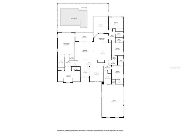 Welcome to luxury living in the highly coveted gated community of Vilano. This stunning home sits on an expansive ~1.54-acre lot with panoramic pond views. This spacious, natural light-filled residence boasts a thoughtful split-bedroom floor plan perfect for entertaining. The expansive kitchen features granite countertops, shaker-style cabinets, stainless steel appliances, cooktop with vent hood, built-in oven and microwave, single-basin stainless sink, glass tile backsplash, walk-in pantry with custom built-ins, breakfast bar, and a cozy breakfast nook overlooking the serene pond. A built-in desk station also adds convenience. The resort-style owner's suite offers double-entry foyer access, tray ceilings, dual walk-in closets with built-in organizers, luxury vinyl plank flooring, dual vanities, garden tub, oversized stand-up shower, separate water closet, and linen closet. All four bedrooms feature en-suite or private bath access (Bath #4 also serves the pool area). Step from your Great Room thru the sliding doors to your private oasis with a heated spillover spa, salt/chlorinated pool with sun shelf, screened enclosure, covered lanai with flatscreen TV, and a pre-plumbed location for an outdoor kitchen. Enjoy lush landscaping, outdoor lighting, flagpole, brick paver driveway and walkways (with extra off-street parking), hurricane shutters, vinyl windows, irrigation system, recessed lighting, elegant tile floors throughout the living areas, and a whole-house water filtration. Additional highlights include a three-car garage with epoxy floors, built-in shelving/loft storage, inside utility room with sink, security system, formal dining room, foyer with double-entry front door, arched doorways, and so much more. Don't miss this opportunity to make your home in Vilano where estate-sized lots meet modern elegance and tranquility! Start living today!